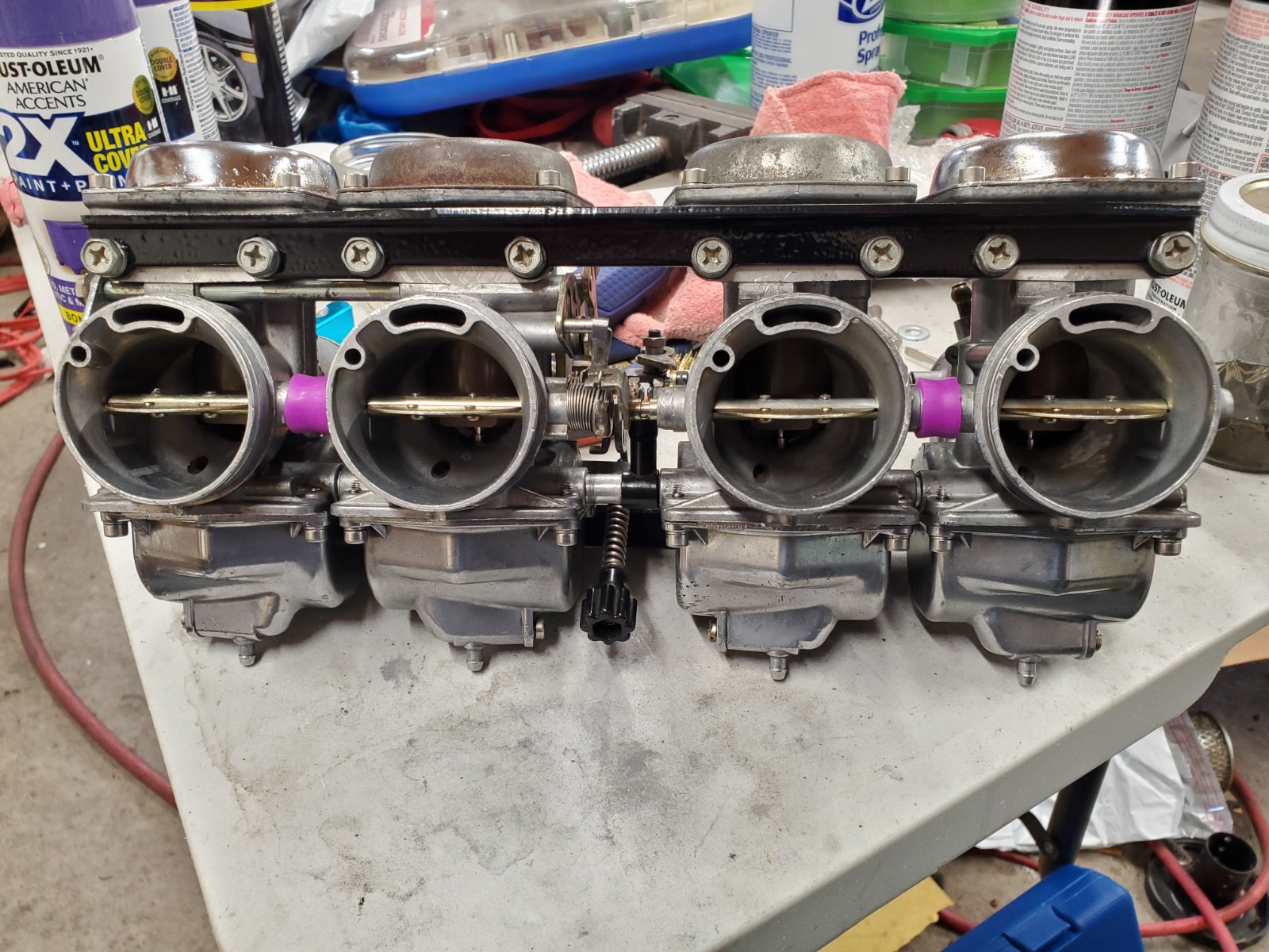 So a update went to do the clear house test and found out carb 3 had a crack in the overflow pipe. Went to fix it and of course no one around me carried small enough copper tubing so ended up just soldering it. Also found out that the gasket for carb 3 got pinched and broke so had to order some new gaskets. After about 5 times finally got them pretty well dialed in I think. Found out that my choke was not working right and after some reading in this amazing form found out some solutions and got that fixed. Got a carb sync coming in the mail and hopefully next couple days get a chance to get it up and running and dialed in. I really want to thank everyone for all the help and for this amazing form and community. Ill post some pictures on a post when I get everything up and done.