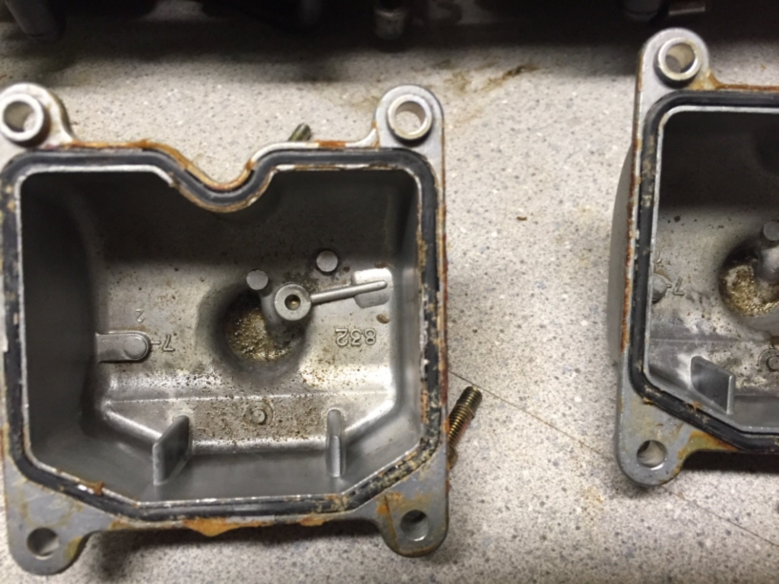 This is a twin, and is probably not an issue, but in the 750-4, I have made it so I can remove/replace everything in carbs from top or bottom(except enrichening plungers), w/out removing carbs from engine. Am using allen bolts on carb bowls, and improvised some small tools. I can adjust 4 floats and back in bike in less than an hour, if nothing else because is better take your time adjusting the float tabs.