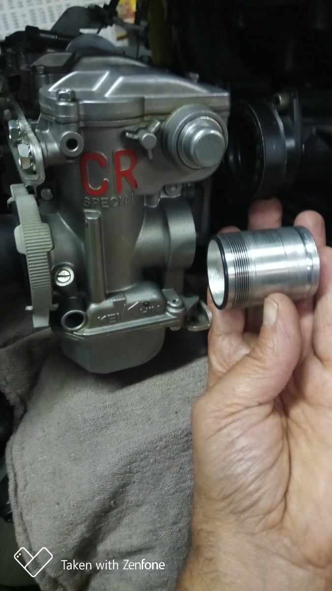 Hey guys, finally got my bike back and all is well with it, apparently (if anyone remembers) since putting the engine back together my timing was off by a little bit and he fixed that issue, i did go ahead and run with the cr26 which have been a headache trying to get on. What ended up happening was that the adaptors supplied were a little bit bigger than the intake manifold boots. So, he had to get rubber couplers, attach that to both end which made the carbs pushed back a little bit farther, so now i cant get air filters 1 and 4 on. Is there an adaptor that can work with these carbs and for the D1 stock intake manifolds? Maybe a rubber couple that reduces to the correct size? Any ideas? Might have to make something...thanks.