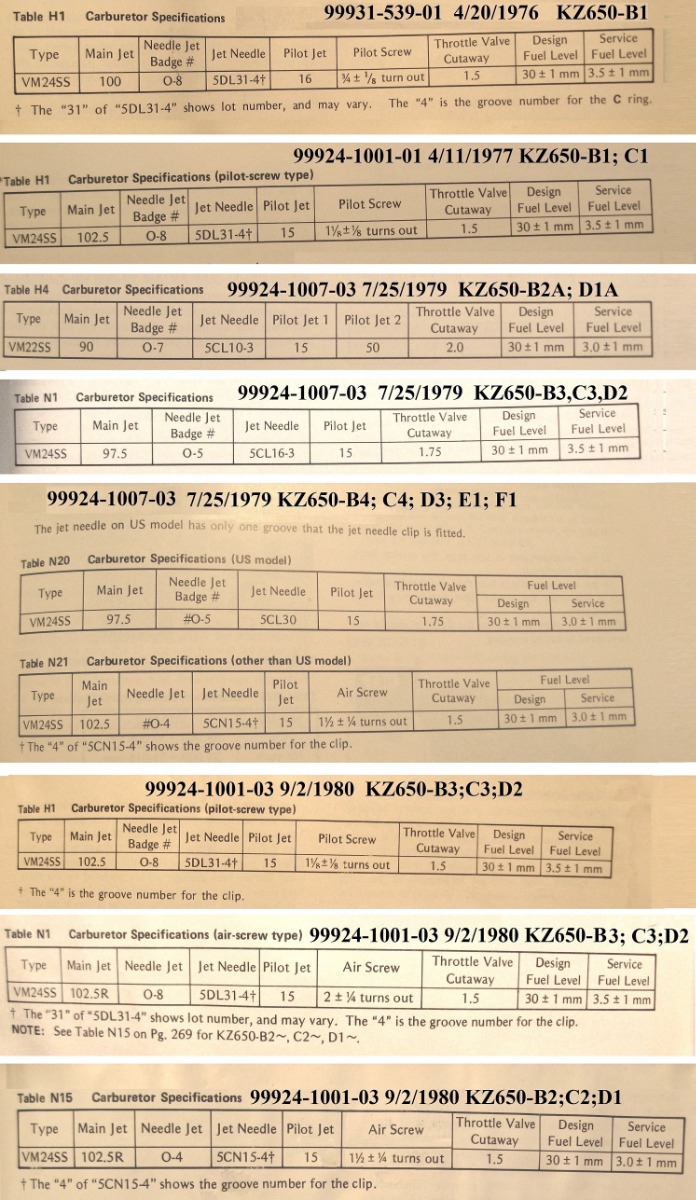 air mix screws on a 1980 kz 650 ltd. I can find info for the bings on my other bike but not for the carbs on my kz. Also anyone happen to know(or where to find) what would be a correct(ish) reading for an exhaust gas analyzer for each exhaust? This bike has the original 4 to 2 setup. so any readings will be for two carbs at a time.