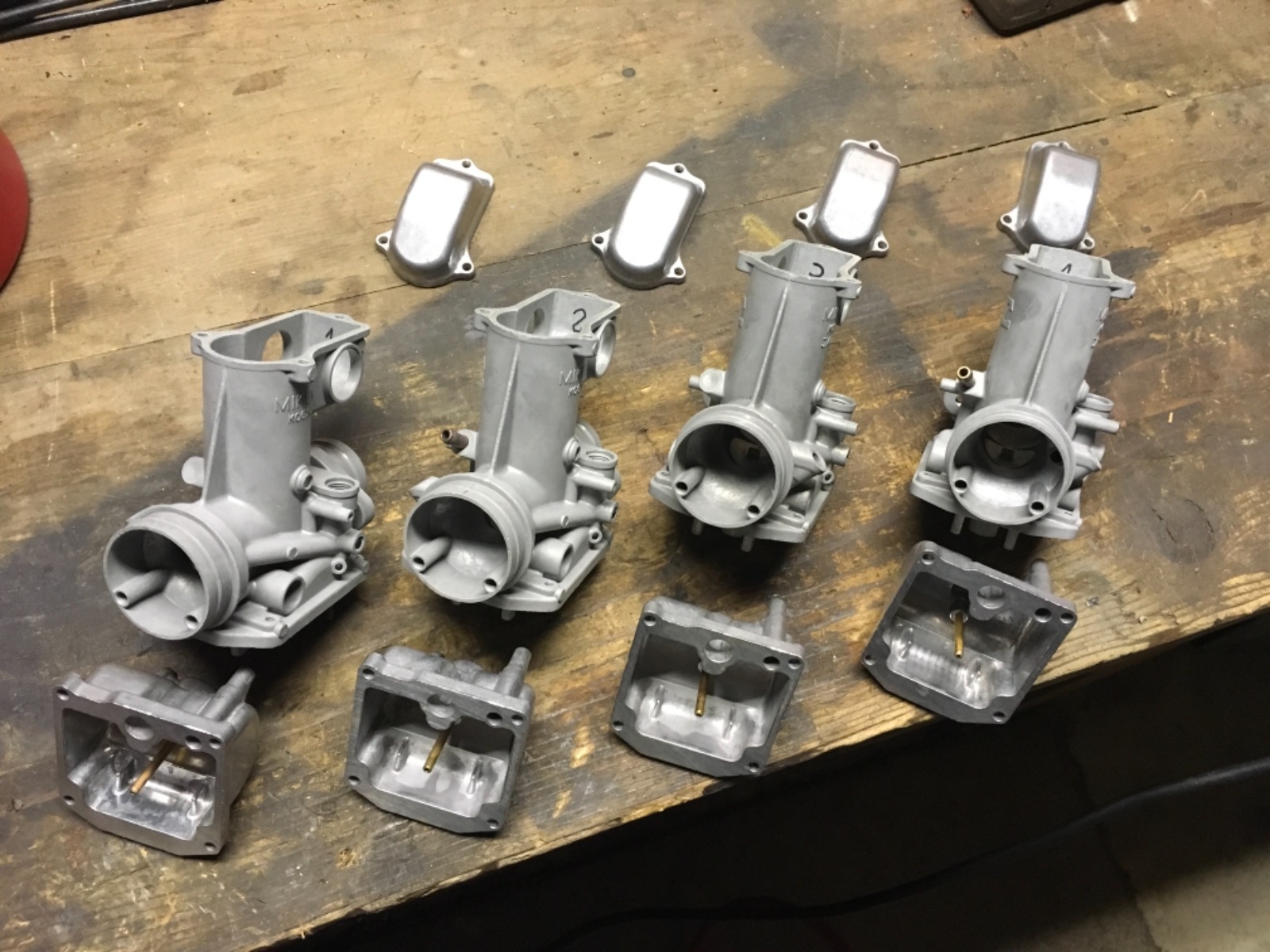 Carburetor work isn't that hard. The same thing is done 4 times on a lot of stuff & most parts only go back together one way, so it's kind of hard to mess up. Use good fitting tools to avoid damaging the brass bits. Don't order anything until you've got them apart & verified. In many cases you only need to replace gaskets, o-rings & rubber bits. I've only done one set but it seemed easy. previously, I had removed the bowls & stuff under there. then did the full teardown.