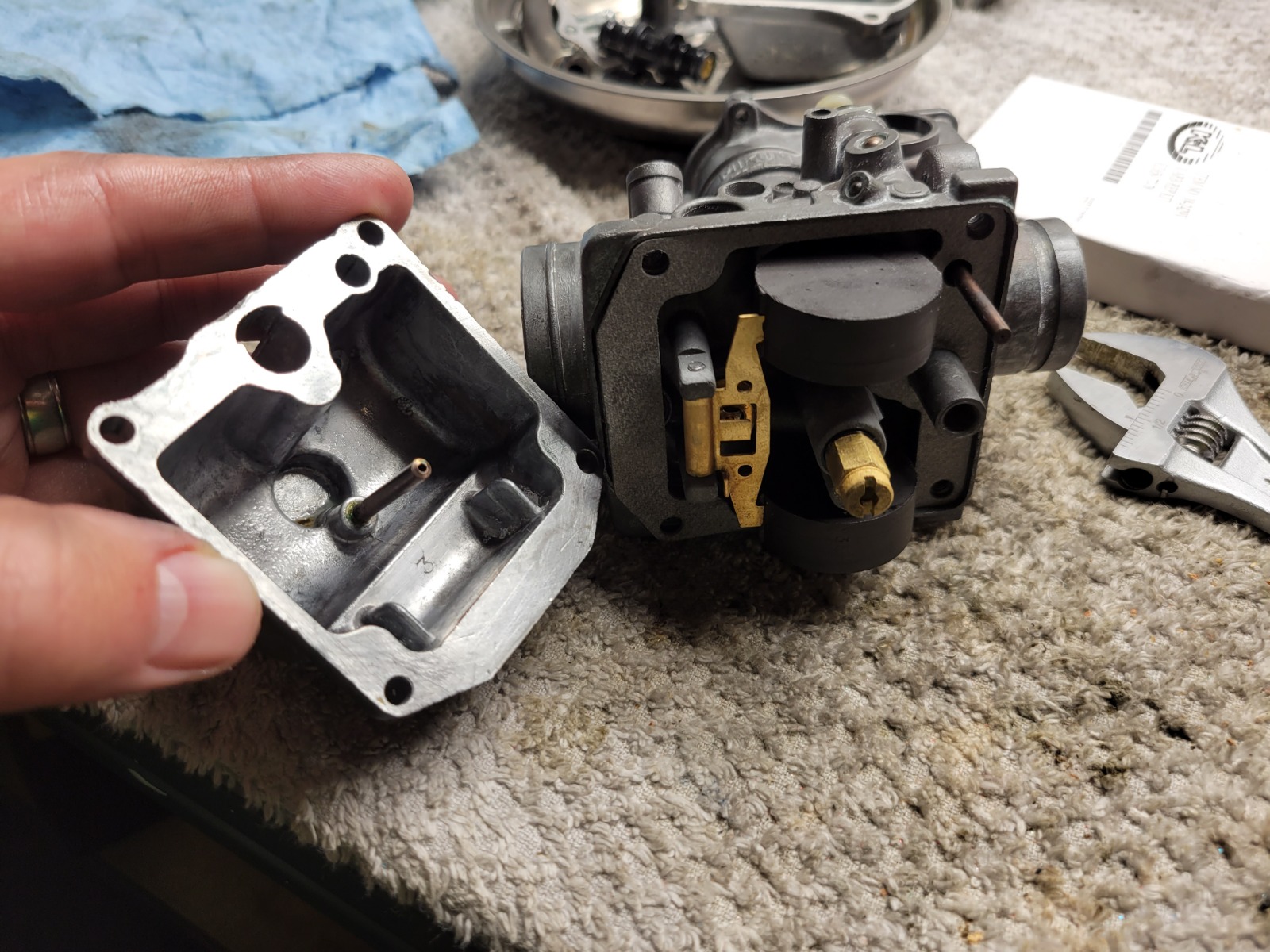 Then also on the float bowl itself ( near your index finger in the pic) there is a chamber where the tube fits and gets it fuel supply from which is fed from the float bowl. There is also another small hole at the base of that which needs to be clear too.