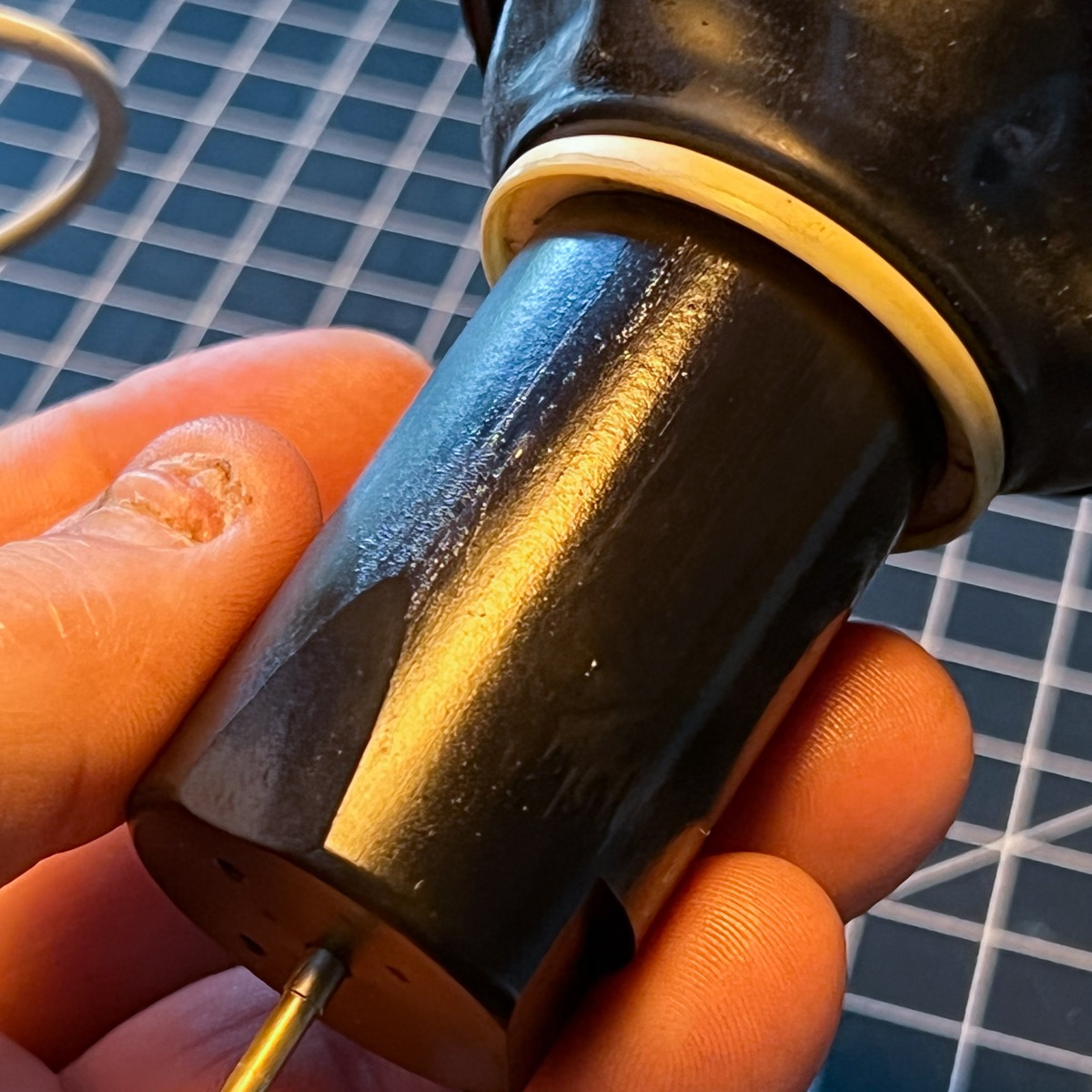 I just finally got to pulling the carbs off my ‘83 Spectre. They were the last component I’m planning to remove this season and upon inspection I noticed the valves seemed a little sticky. I took the caps off and pulled them out to find that they have a sort of matte coating on them that is sticky and roughed up in some places. It comes off on in a black dust on my thumbnail if I scrape it. Beneath it there looks to be a smooth shinier black surface.