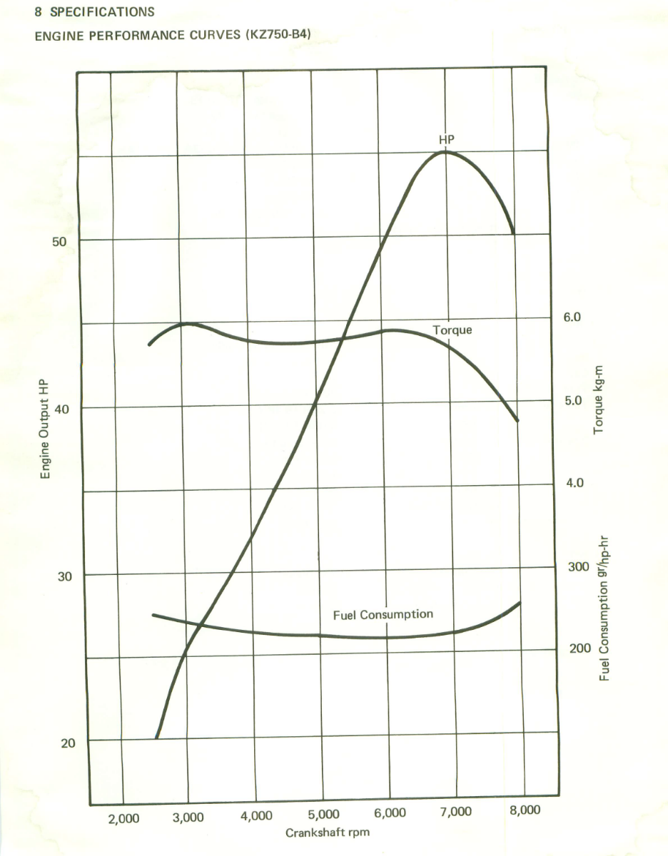 14 Jul 2022 16:40The outright torque number is uninteresting. The interesting point is the torque curve and where in the rev range torque is available. The kz750-4 sure has good torque, but it is way up in the rev range.The KZ750 twin has 55HP,and 44.8 ft-lbs of torque , the KZ 650 has 66HP and almost the same torque, the KZ750 four has 74HP and about the same torque, {2 or 3 ft-lb difference}, you'd be going backwards with the twin...