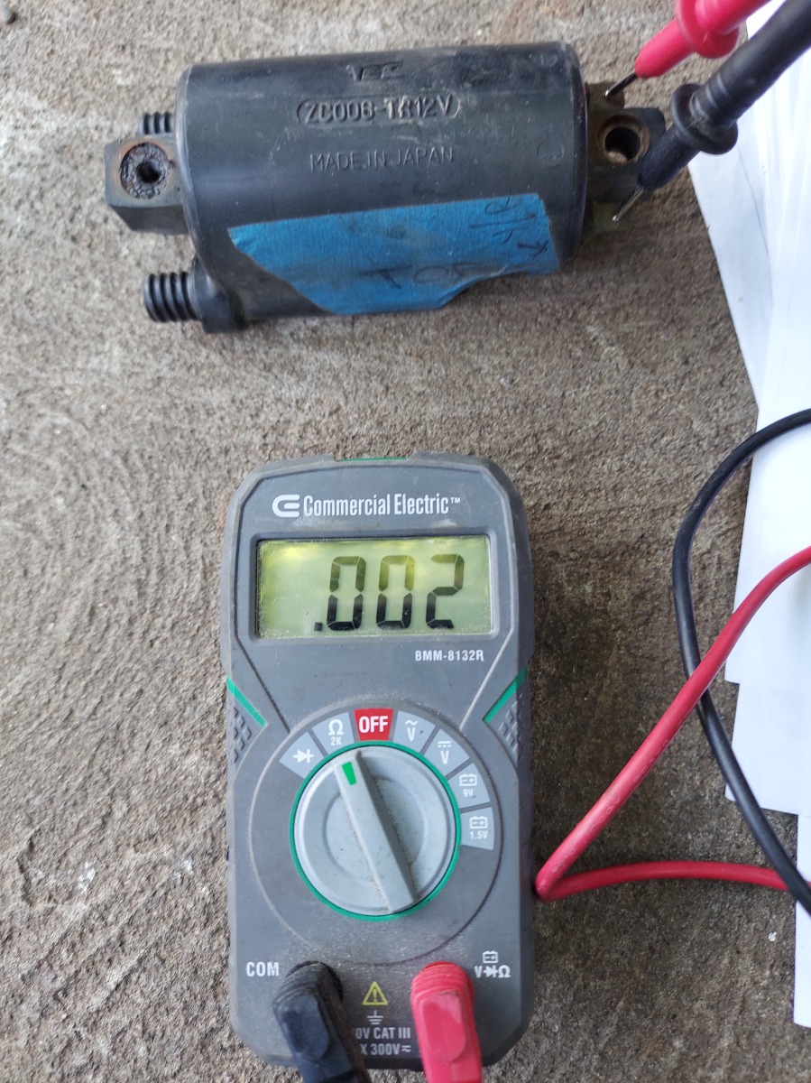 I then moved onto testing the coil per my sevice manual. The manual says to set my meter to rx100 for the primary but my meter only goes to 2k ohm. When I tested that I got .002 for my range