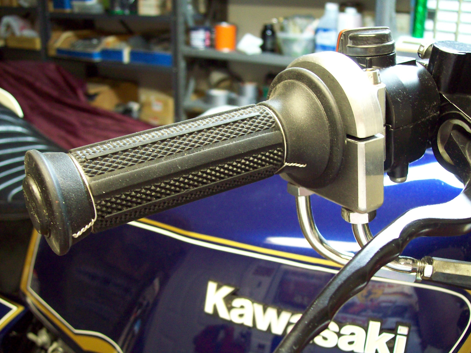 The GSXR750 uses the billet throttle from Yoshimura they offered for that bike many moons ago. I had a Motion Pro throttle on the Kz1000 at first. WHAT A PIECE OF JUNK!!!!! I even reworked the Motion Pro body to except O.E.M. type thread in cables. The Motion Pro throttle was like opening a bear trap. I scrapped it after I found an early billet prototype Yoshimura throttle. Both Yoshimura throttles use the very same throttle sleeves. As soon as I installed the Yoshimura throttle on the Kz1000 it was as easy to open as the GSXR was!!!!