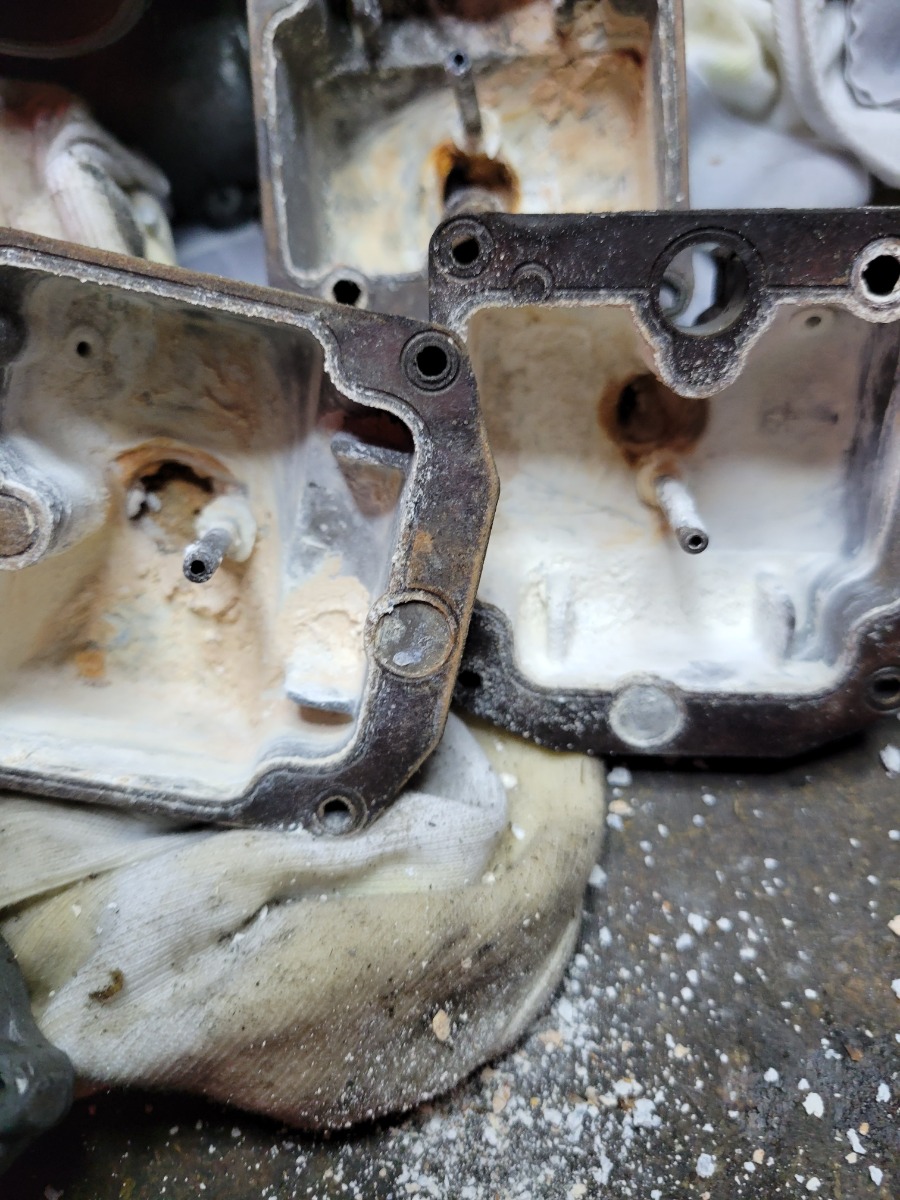 Check these carbs recently bought as a restoration project. I've got a blast cabinet and zinc plating setup to clean up the outside, but there is nothing that can be done with THIS!