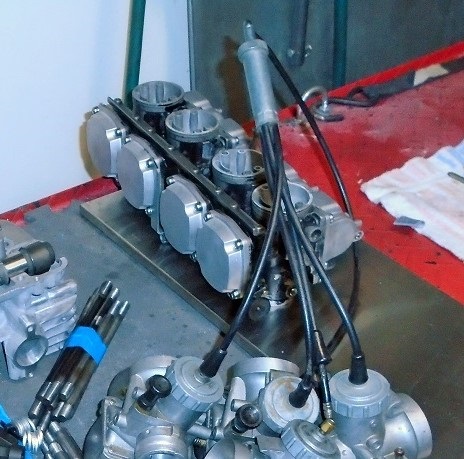 Yet another set (almost) done. Still need to set the fuel level and install the drain plugs. This set has a vacuum port on the carbs and code (hard to read) is 102 5A.