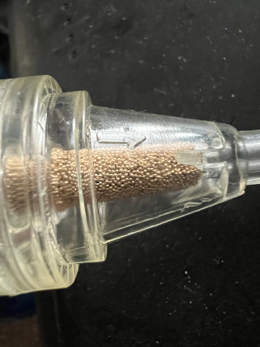 Are you 100% sure? Every tapered inline filter I have ever seen has the wide end as the outlet and narrow as the inlet and if they are in backwards it would cause the issues you are experiencing.