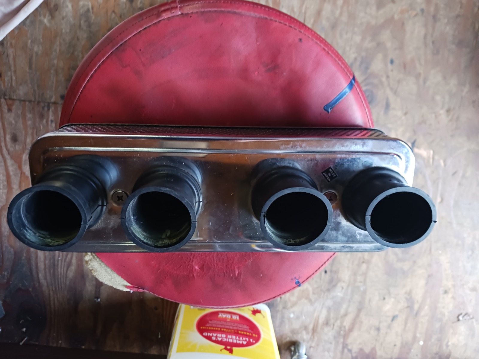I just stumbled across that NOS air box in a bin of parts I bought at a swap meet. I just replaced the disintegrated filter foam with UNI green foam I bought from my local dealer. The rubber on the spigots was perfect and the chrome good, probably mid 1970's vintage, not sure what they go for now.