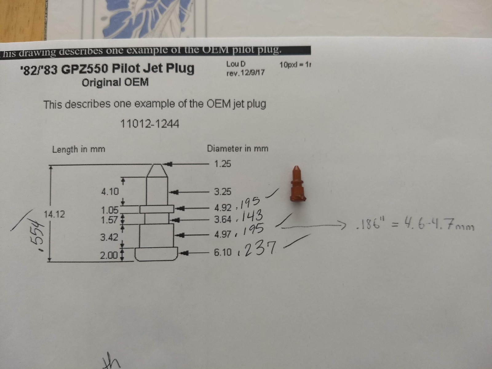 Gone through the 1982 GPZ-550 carburetors and they are clean as a whistle now but the O-rings on the pilot jet plug have disintegrated.