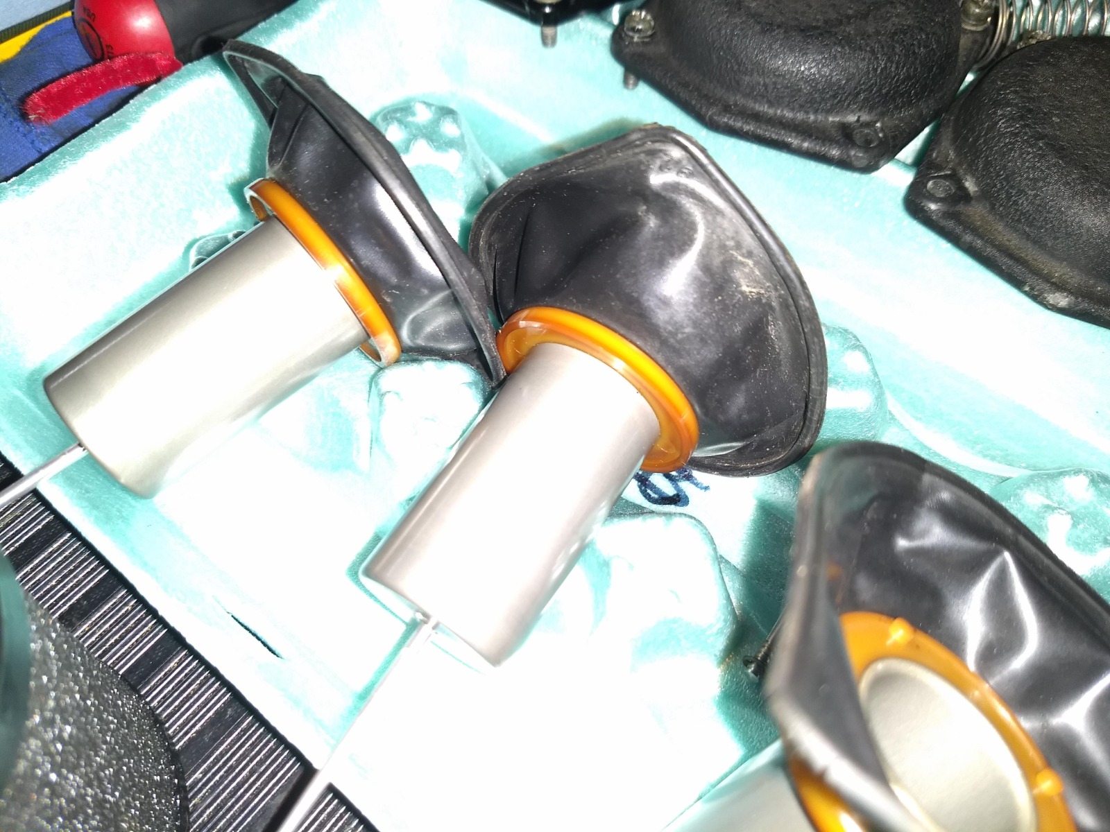 The top of the diaphragms have vertical cracks where they are secured by the top chamber covers.