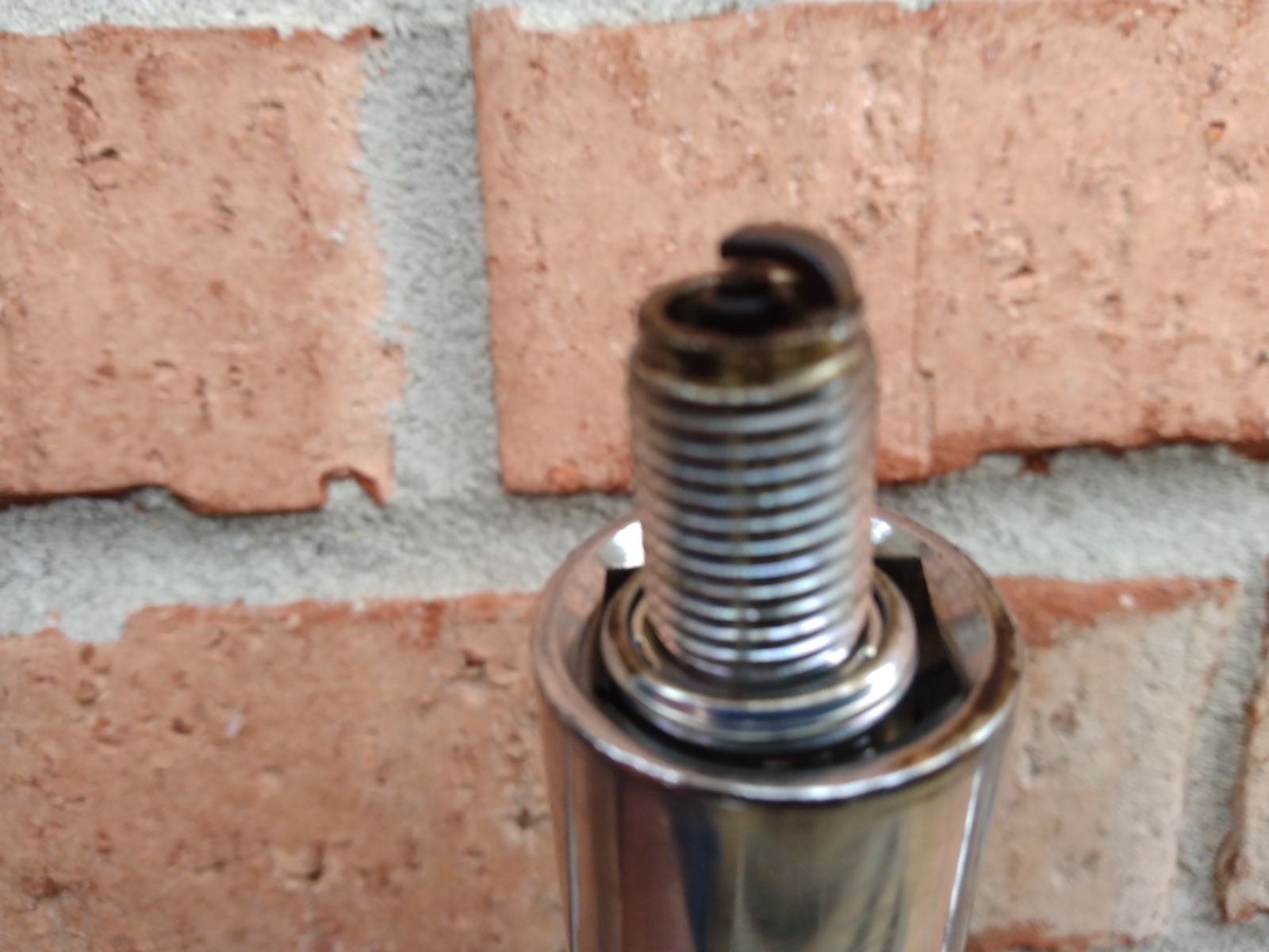 Not great pictures but these spark plugs have 15 minutes on them, bought new today. The old ones smell like gas when pulled out.