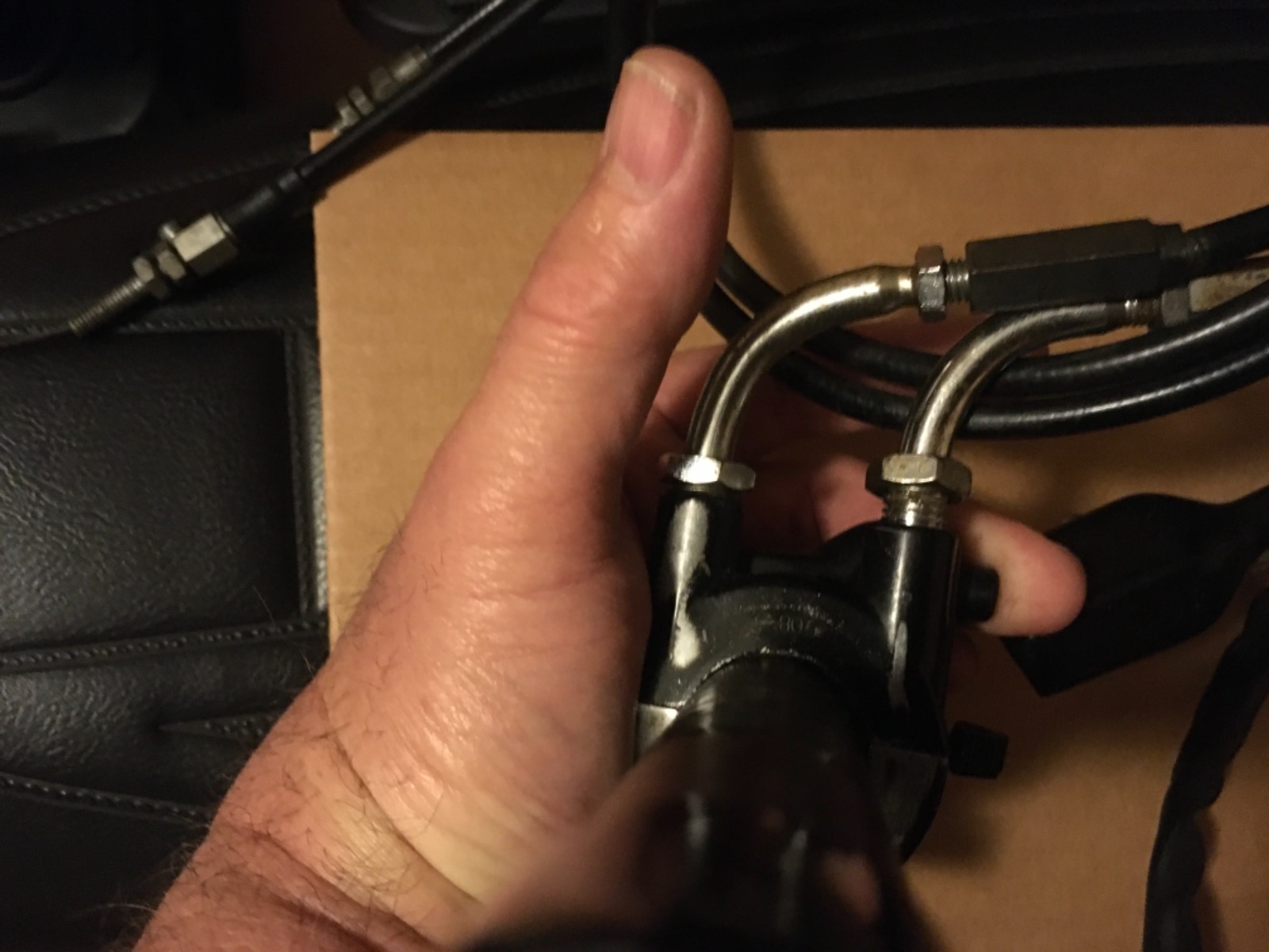 I was in the same camp as Warren, TILL, I pulled some shelf parts down and started looking. I had always assumed there was two different angles on the hard pipe elbow, one reason I thought that was, the manual tells you to install the Accelerator (front) cable first. I again thought it was due to angle. Turns out with OEM the hard pipe elbows are the same angle, different though, in that one has a sharper/tighter bend, and are different in length also. On the OEM RH control the threaded bosses that receive the elbows and different heights. It’s this little difference that allow you to easily screw in the elbows.
