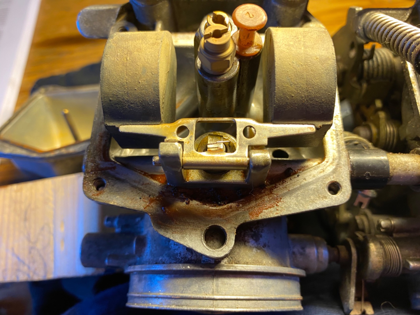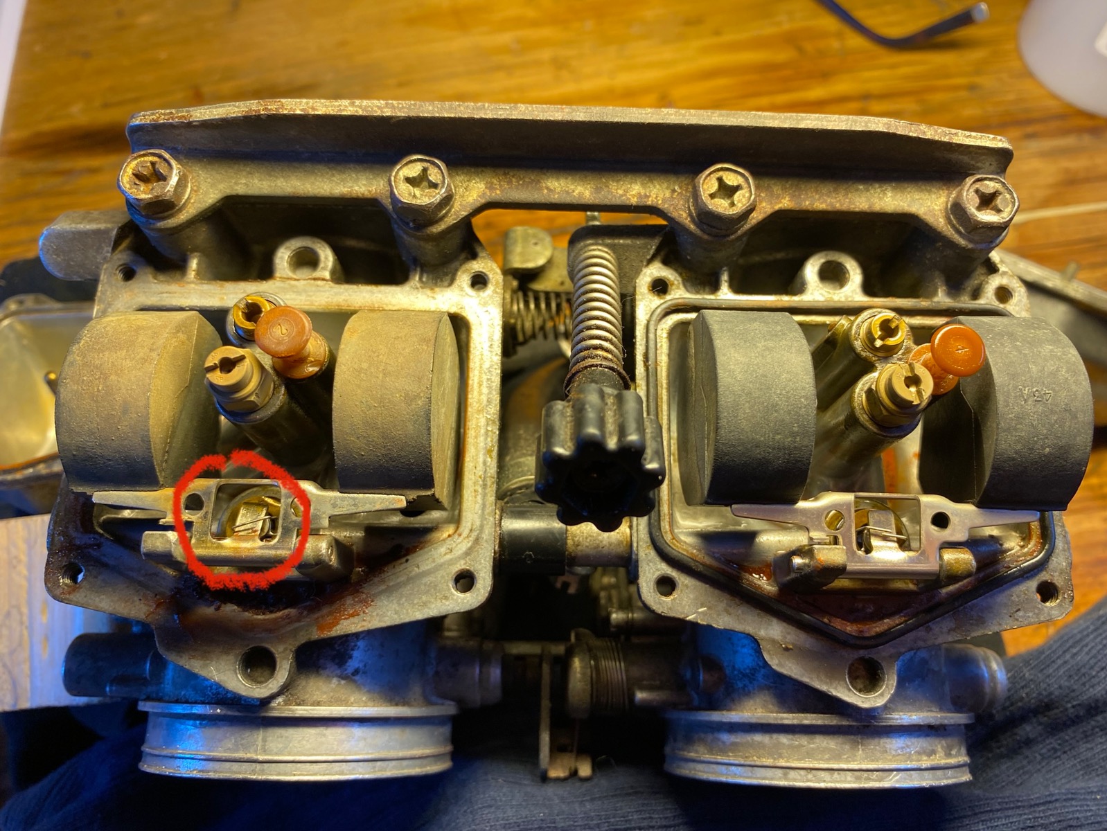 Ended up removing the carbs. Much easier with the new boots. No leak in vertical overflow pipe. The behaviour of the float in the leaky carb is different from the good one: No springiness. Not exactly stiff either. It looks more worn than the good carb. I wonder where the springiness comes from. The float valve needle?the valve does appear to move open and shut in the leaky carb.curiously the flat thin part of the float that pushes the valve needle closed is bent more towards the needle than the good carb. I’ve circled it in one of my pictures. It’s not flush with the rest of the same piece. That would suggest someone has already had this carb open due to leaks and modified the float to close the valve sooner. Im thinking some 3-1 oil for the float pin to perhaps allow the float to spring. Perhaps it’s not moving easily on the pin. what do you suggest please as next steps. I’ve posted pictures and a couple of .mov clips, which I hope you can download and open.