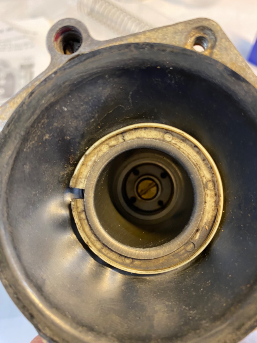 A bit gutted to find a split in the top side of the plastic diaphragm holder on the vacuum piston. The bottom side is fine and the integrity of the diaphragm appears ok.
