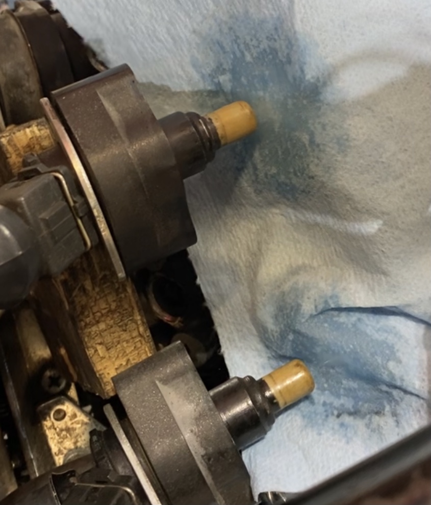 I looked at my video clip and ran it in slo mo, I noticed the mist varies with each squirt, here are 4 pics 2 from each pair cyl 1/2 and cyl 3/4. One squirt is heavy and one is finer. That could be the computer changing the cycle duration, many squirts are not visible into the paper towel but then you see one or 2 that are heavier. I still need to do the jar test mentioned in a prior post.