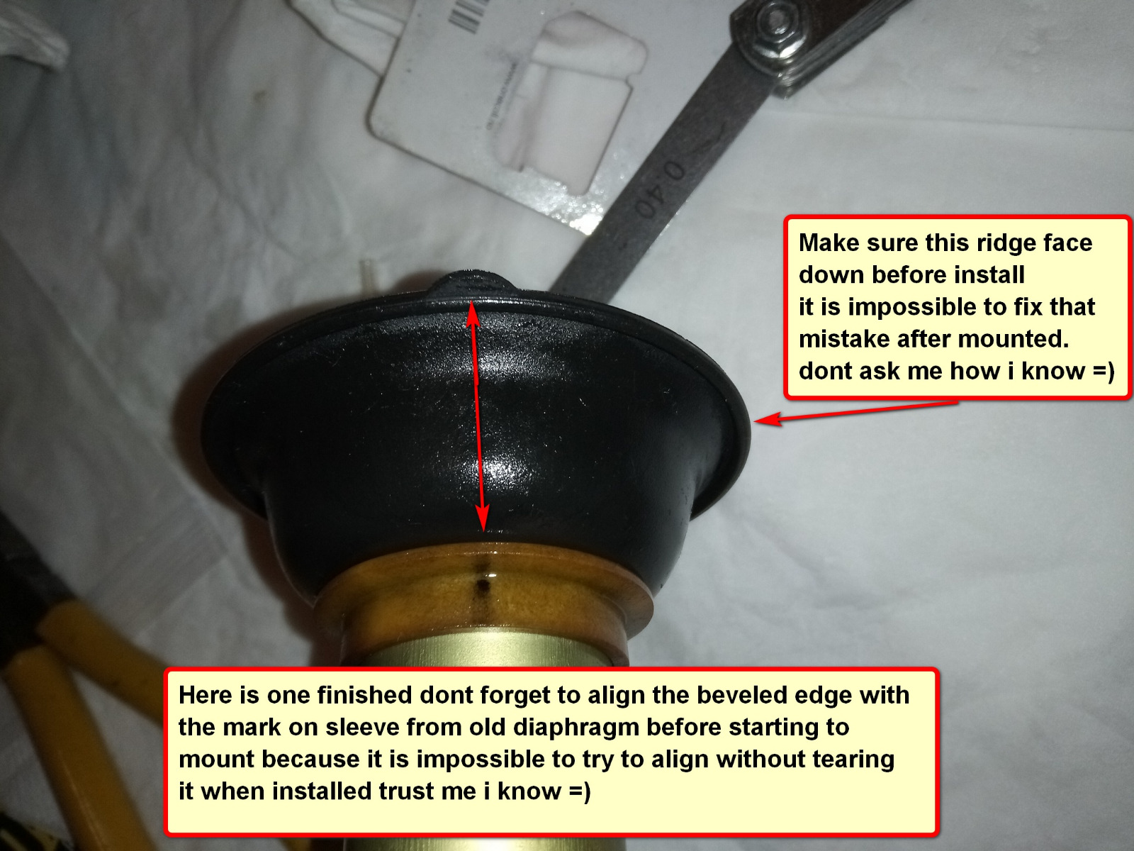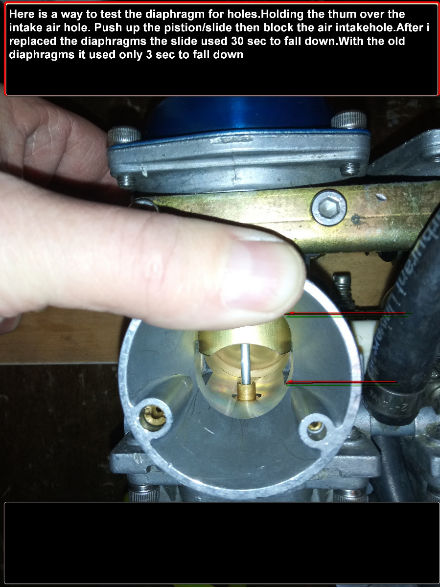 31 Oct 2023 09:54Yes, please post your tutorial...or at least a link. I'm interested in learning how you removed the diaphragm, and installed the new one.I have used similar on BS36 carbs they have worked fine for 3 years.I have not opened the lids to take a look at them since the bike still runs great. I bought them dirt cheap from ebay.