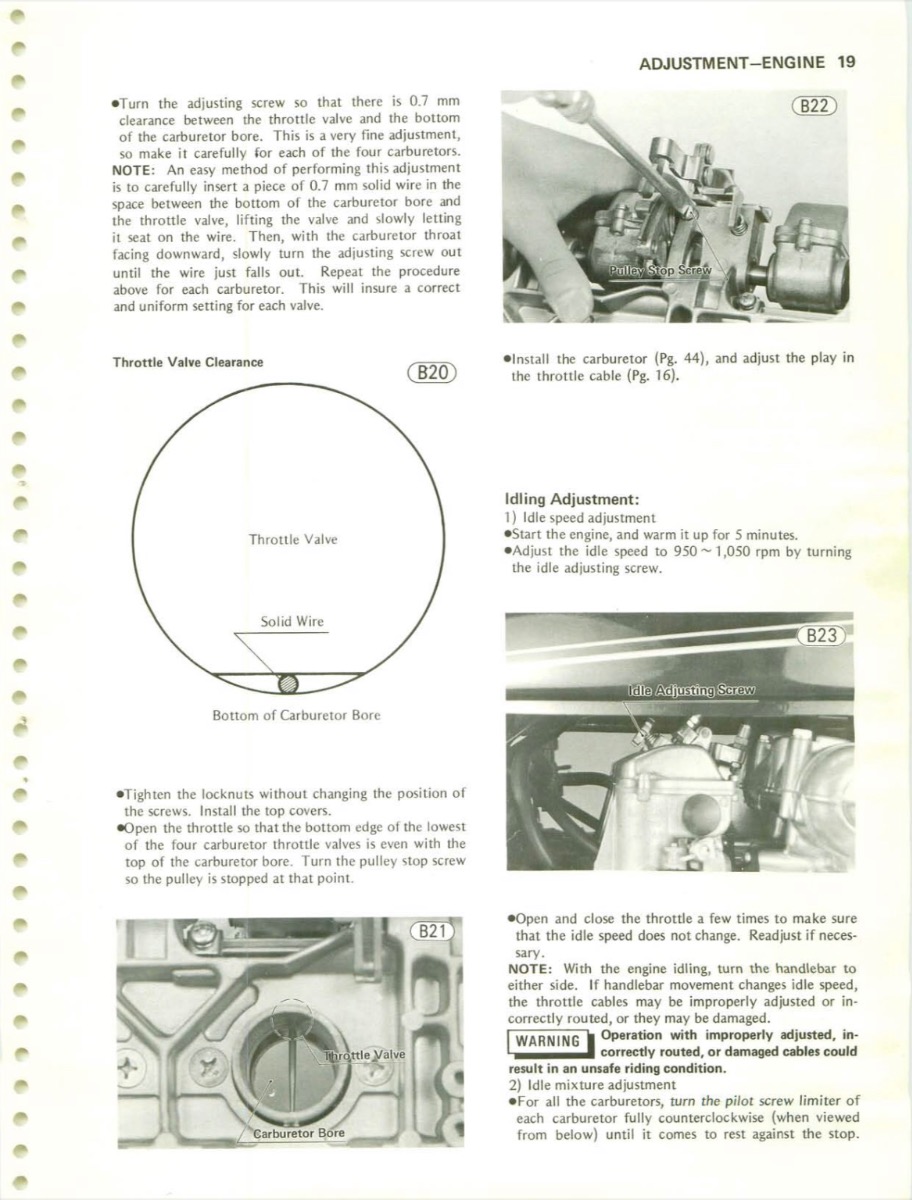 Thanks for that Mikaw. That’s pretty much what I did but I used how much the needles were protruding out inside the carbs as reference. I only needed to adjust two of them and at that very little.
