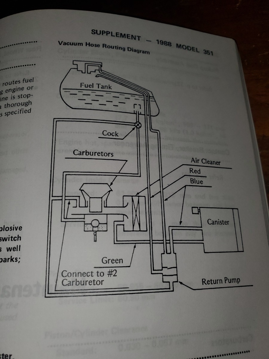 Is that vac line on the side of the canister open to atmosphere ? The diagram shows it going back to the tank. This would effect the fuel petcock. How does it run with the petcock in the "prime" position?