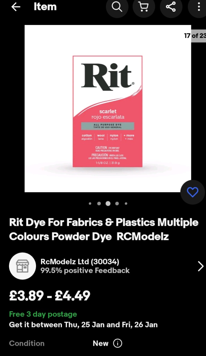 Used it dye nylon props and plastic spinners on RC models back in the day. Remember it seemed to work OK. That was mostly red or black dye on white base material so red on faded red should work great. Used it like a stain. Available in all colours.