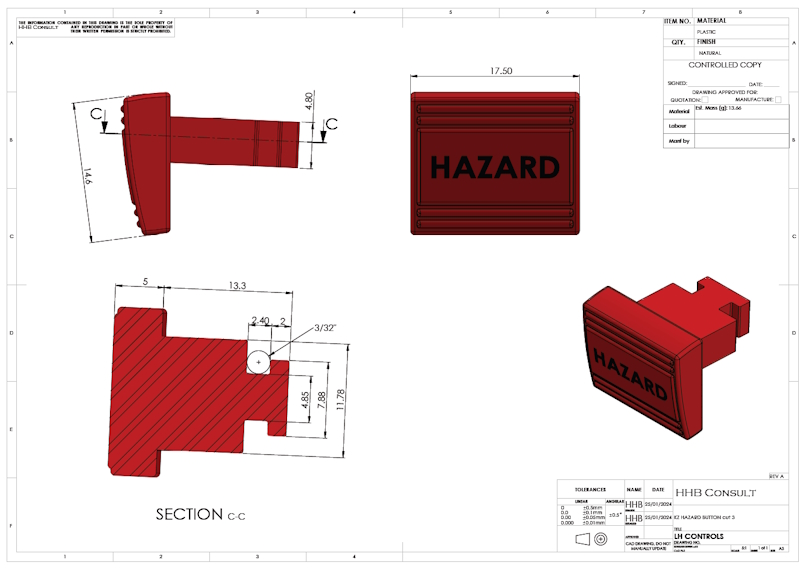 I have access to a small laser engraving machine at work, and maybe the "HAZARD" text could be engraved...