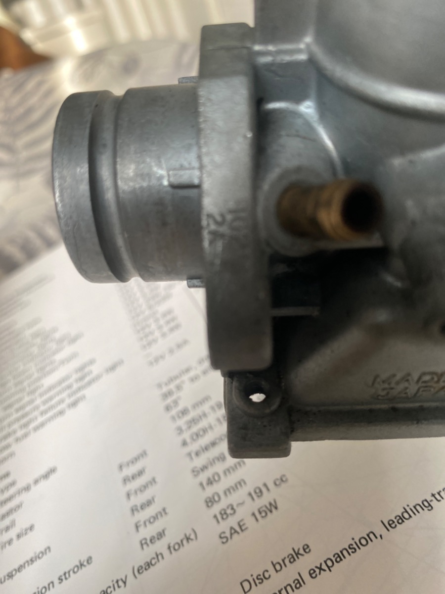 This is the intake side, my manual that came with the bike says 90 main jets but it has 102.5 which I believe is for the 24’s which is what has confused me