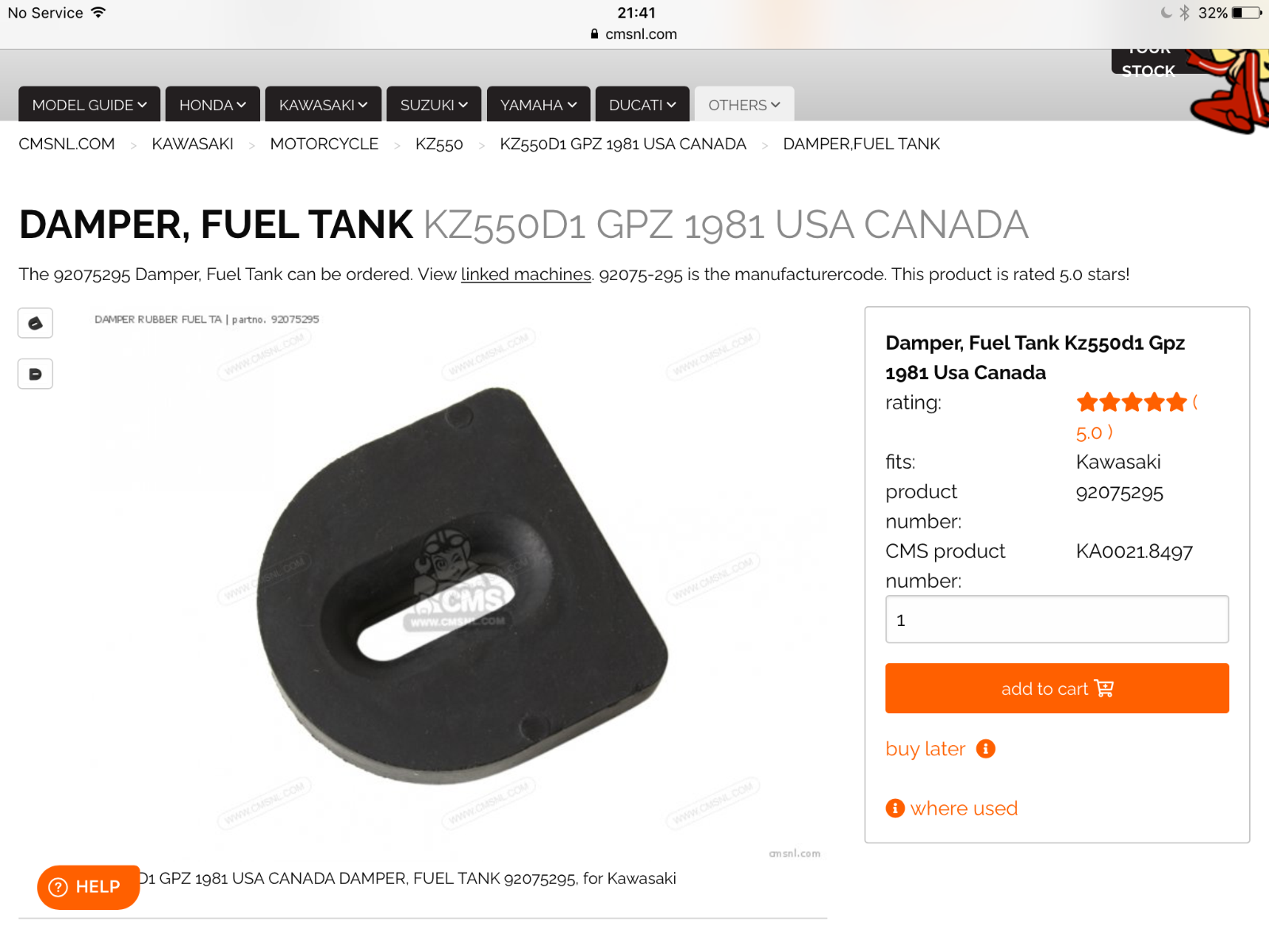 I swear I can't find it anywhere on the usually really good Partzilla PDF list of 1981 GPz550 bits and bots