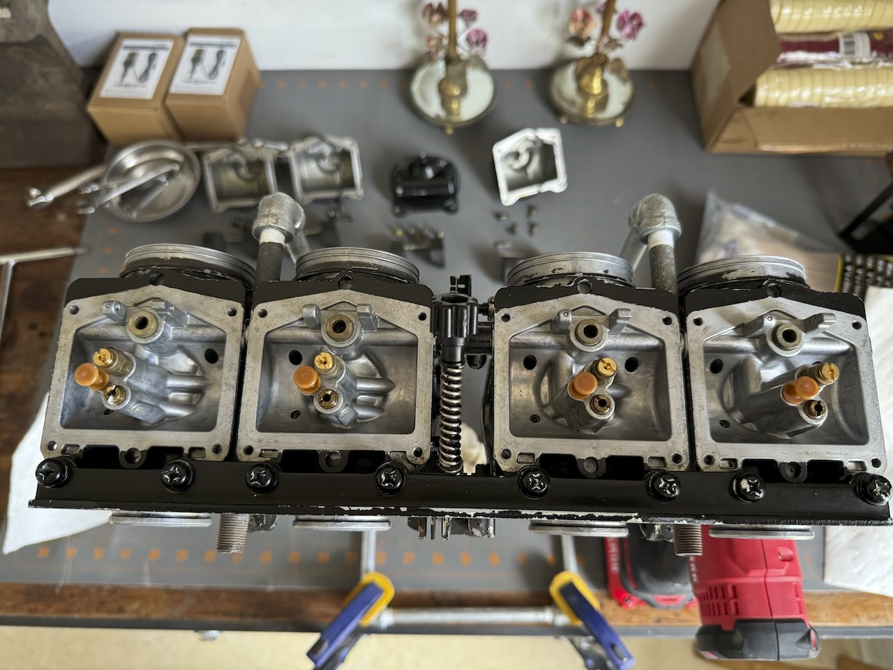 So far, I've popped off all the bowls and checked that everything looked and felt like it was moving feely; no obvious issues. I have pulled the float pins, floats, and float valves (which are also new but from one of those rebuild kits on "the bay of E".