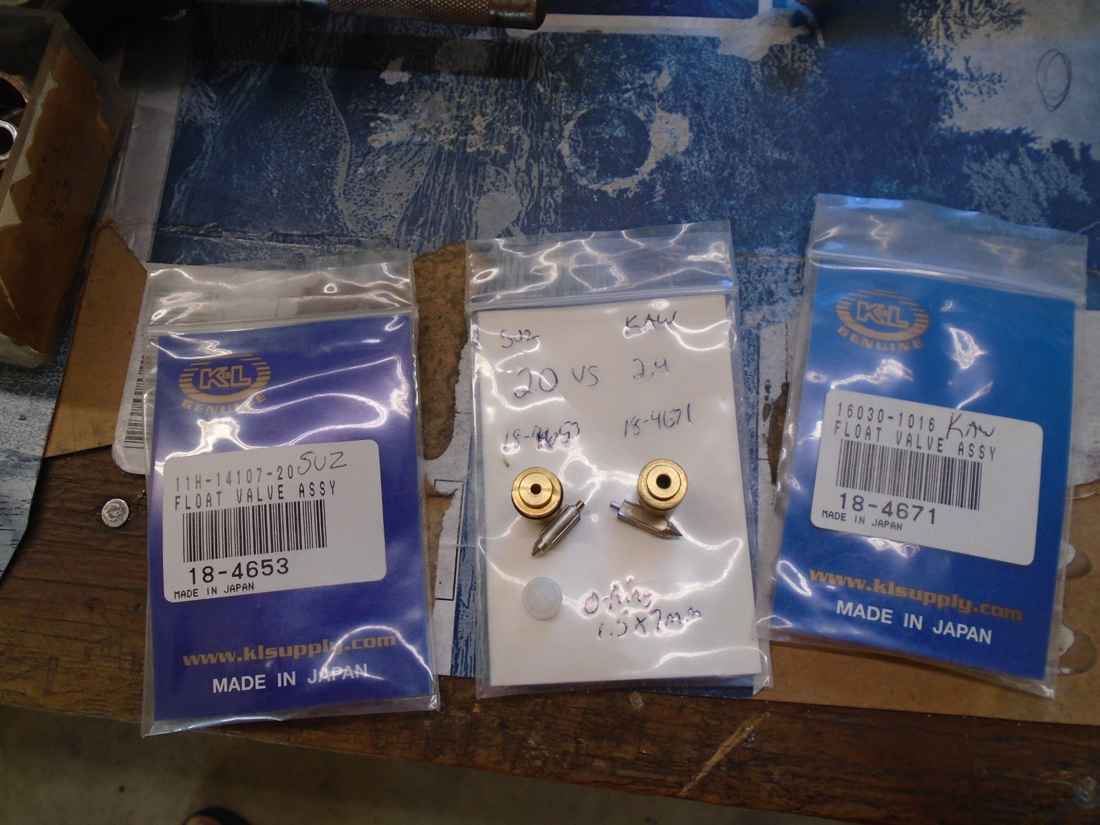 10 Jun 2024 15:29Like ED said, no extra's required, just a nice fitting tygon-clear or some hardware variant tube at the base of the overflow and open the Phillips screw. You'll easily find fuel level. Hopefully the Phillips drain screw has a decent oring but that's a different conversation. Also hopefully it's not stuck, have seen many that were. As far as the float needle and seat, have a glance at this info. If it's flooding out the intake, rest assured it's also going straight down the intake of affected cylinder. Here's an additional addendum of what Ness (ED) had mentioned and a bit more. He's a smart cat but i never waste my time with pedestrian toothpaste or any swivel mechanisms, just shuck and replace. Know that the Kawaski had a "thinking" 2.4 float seat whereas Suzuki used a 2.0 something. At least i can tell from a Keyster labeled replacement. But 2.0 would work just fine with a stock engine. Anyhoot, one can interchange these BS34 parts around between models noting there is a difference in the needle and seat. But ya can't easily effectually put one kawasaki needle into a suzuki seat and vice-versa, they operate within perimeters of each other. Heres a pic of a suzuki Keyster set set into an early J carb set, works just fine, A might expansive but more info is better then just someone blurting crap out. Pictures are cool. Also make sure you didn't just jam that 1.5x7mm float seat oring home, needs a little fingertip of oil to get it seated. You can buy those at any hardware store if you messed-up