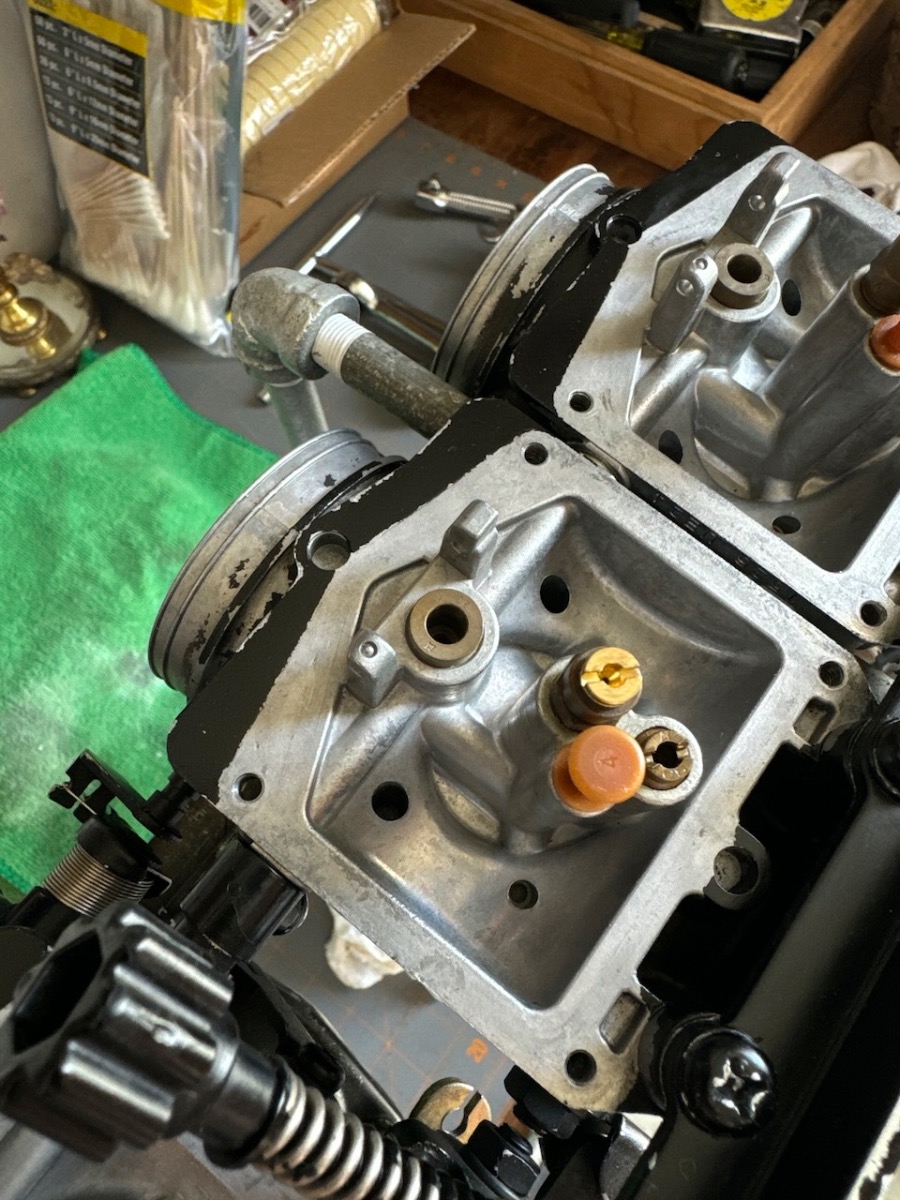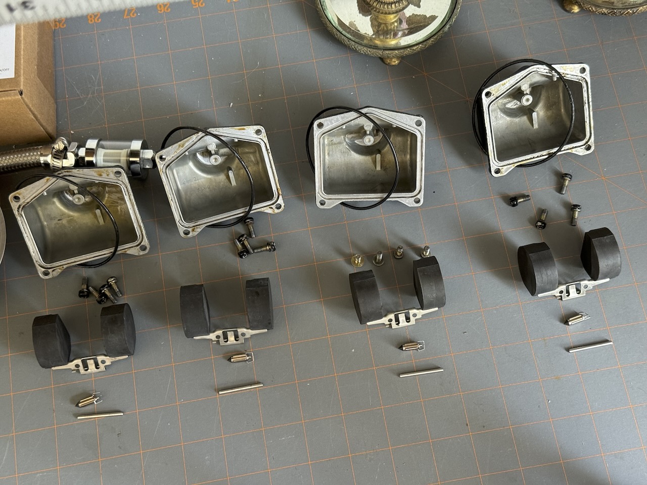 So far, I've popped off all the bowls and checked that everything looked and felt like it was moving feely; no obvious issues. I have pulled the float pins, floats, and float valves (which are also new but from one of those rebuild kits on "the bay of E".