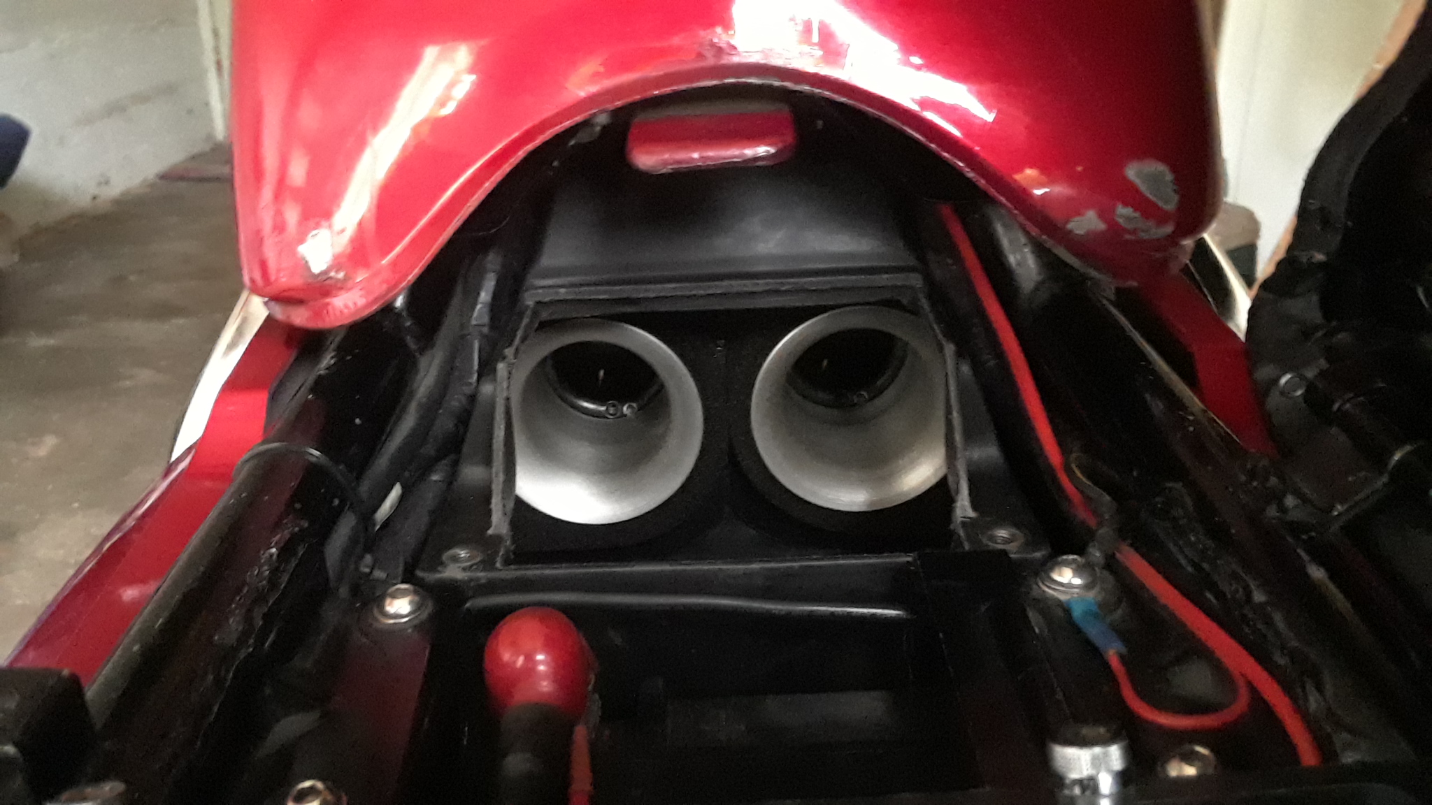 Smokey-stinky fumes came out from the air box around the pods and inflow opening under the seat.The engine ran hot and noisy, though it did seem to be more powerful.
