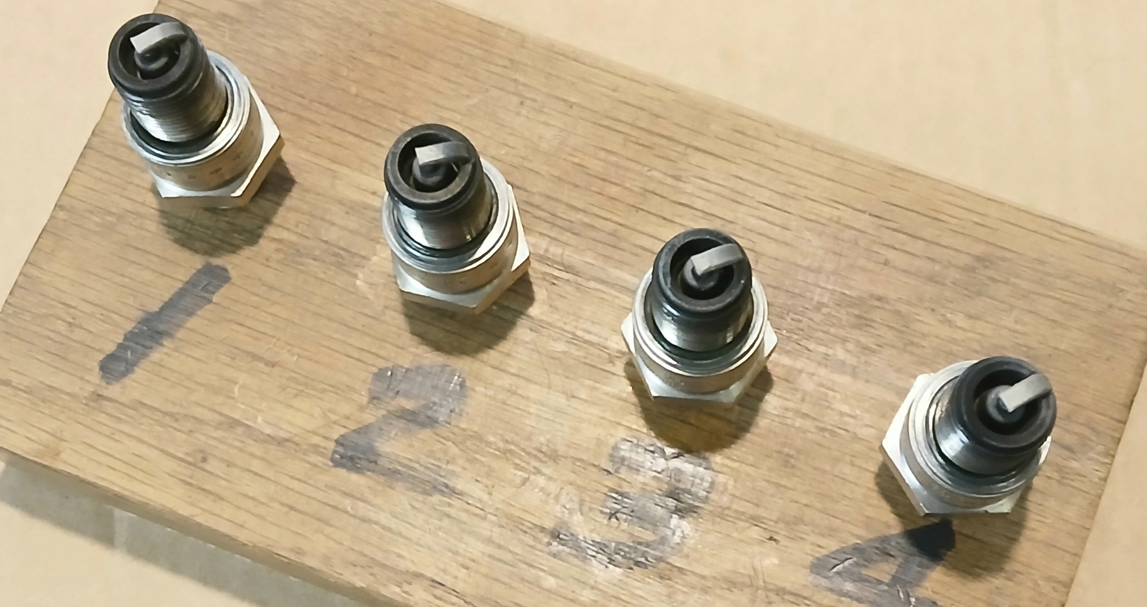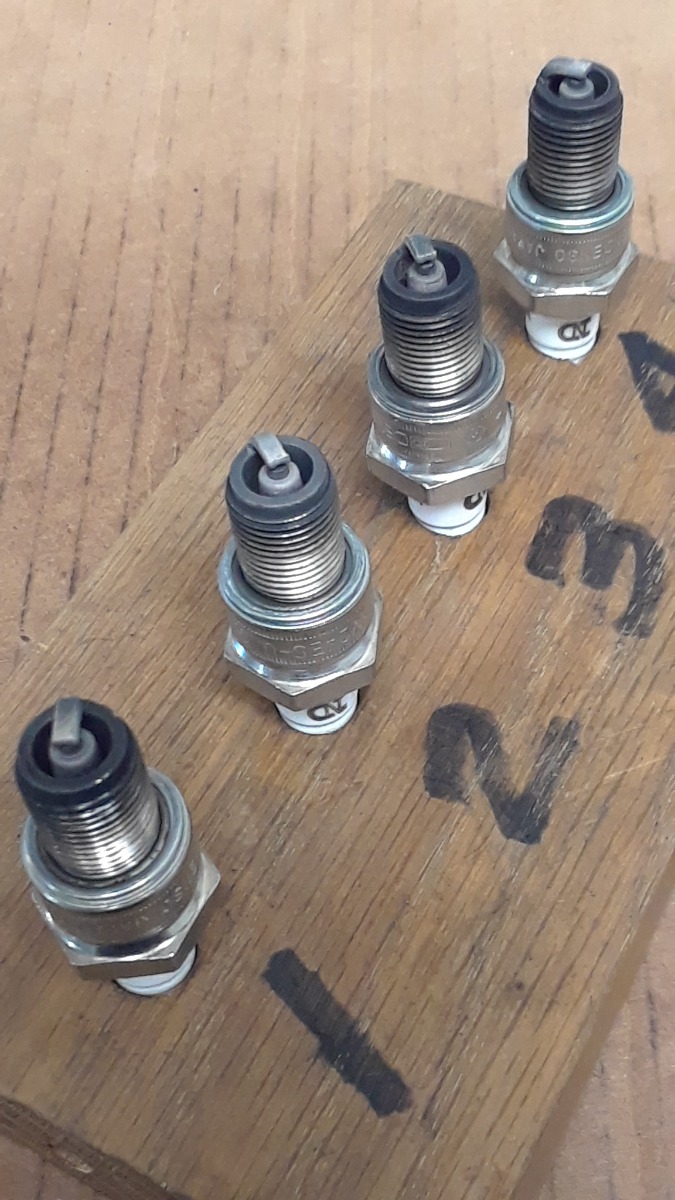 Relative spark plug condition with .8 air jets installed and fuel screws about 1/8 turn out: