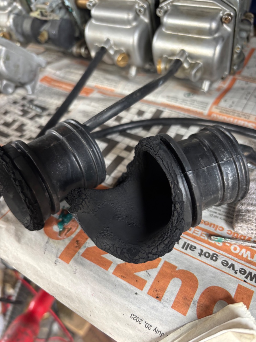 i just removed my carbs to cure a petrol leak and found the two right hand rubbers on nos 3and 4 cylinder are burned badly, they are only a few months old, replacement parts from zpower, timing is spot on and bike runs very well, any ideas? I’ve never seen this before(, I did re set timing a couple of weeks ago as it was running a bit rough ]
