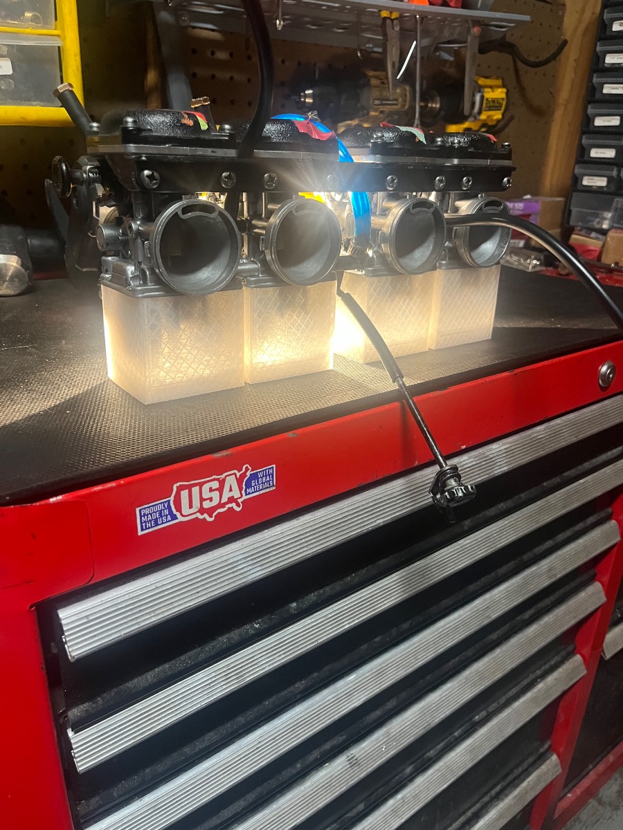 After frustration with air bubbles and inconsistent fuel level measurements using the clear tube method and inspiration by a guy named ADV rider on YouTube I decided to try to 3D print some bowls for checking fuel level measurements. Good way to check fuel flow as well. I spray them with clear coat and they have held up well. Apologize for the quality of the pictures. Maybe I’ll try to get new ones.