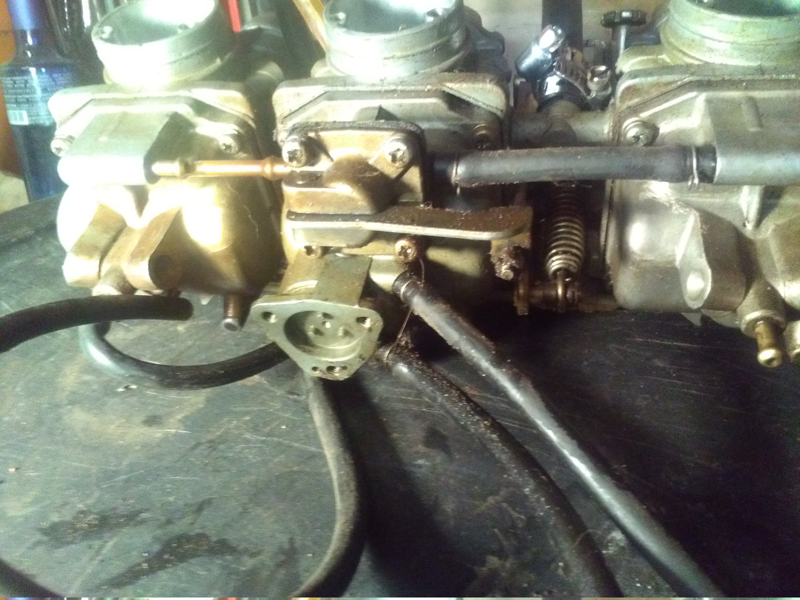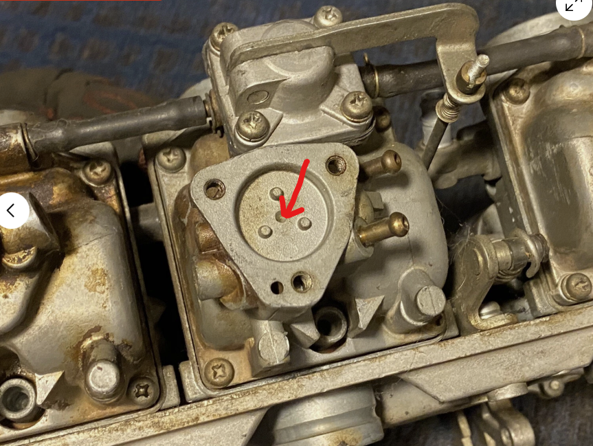 NOTE: this set of 650 carbs is on ebay. See how this passage is not drilled. That indicates that the set does not use the vacuum valve.