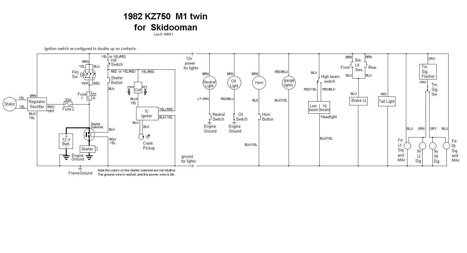 You've really helped a lot of people in this thread. I was wondering if you have a little extra time for me? I've got a 78 KZ650 C2 and found the following wiring diagram: