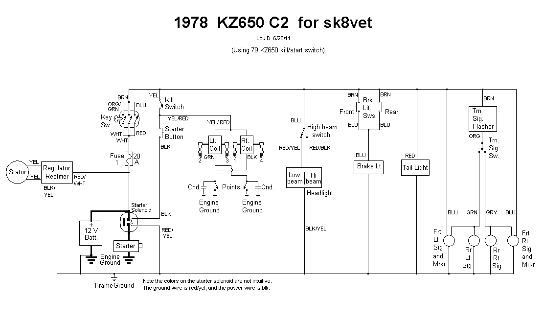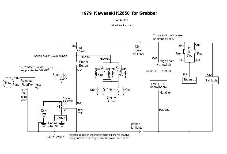 I'm back and hoping you can help me out now that I have my plan straight. Again, I have a 78 KZ650 C2 with the following wiring diagram: