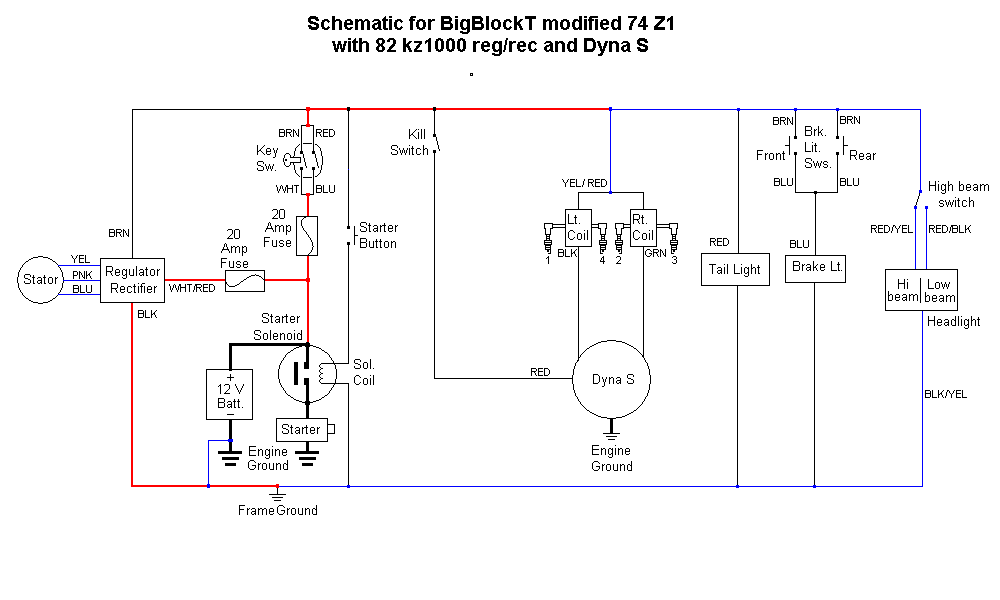 1974 Kawasaki Z1 with Kz1000 reg/rec and Dyna S for BigBlockT