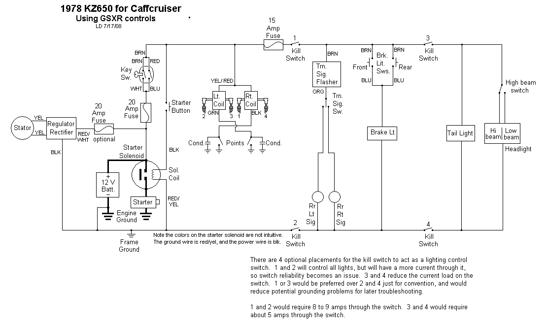 I'm after a diagram for my z650 fitted with gpz750 engine (and ignition system etc). I don't want any of the cut outs (clutch, side stand etc) and I don't want the indicators, but I'll need everything else (gauge lights, headlight & taillight) Being in the UK I won't need the headlight on all the time. Can you help at all?