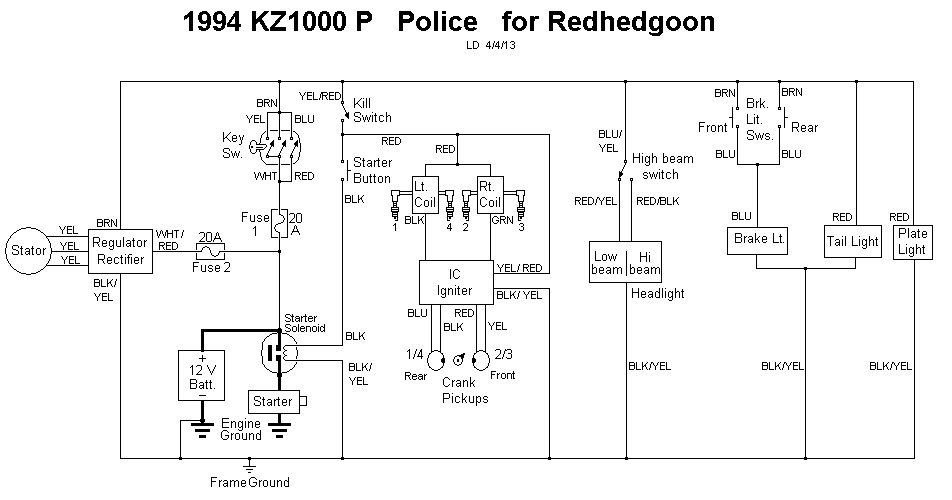 I know this is a very old thread but the wiring diagram you have for the Kawasaki 1000 Police---should be the same for a 1100 Spectre as well correct?