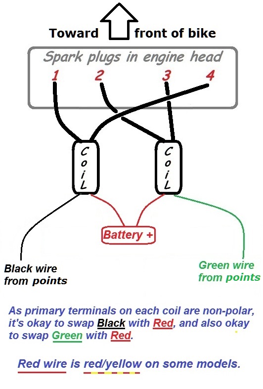 Has anyone got a diagram fr what cylinder each plug wire goes to on a 78 kz 1000, I just would like a diagram of the coil wires and which coil serves what cylinder and which wires on the coils go where thx