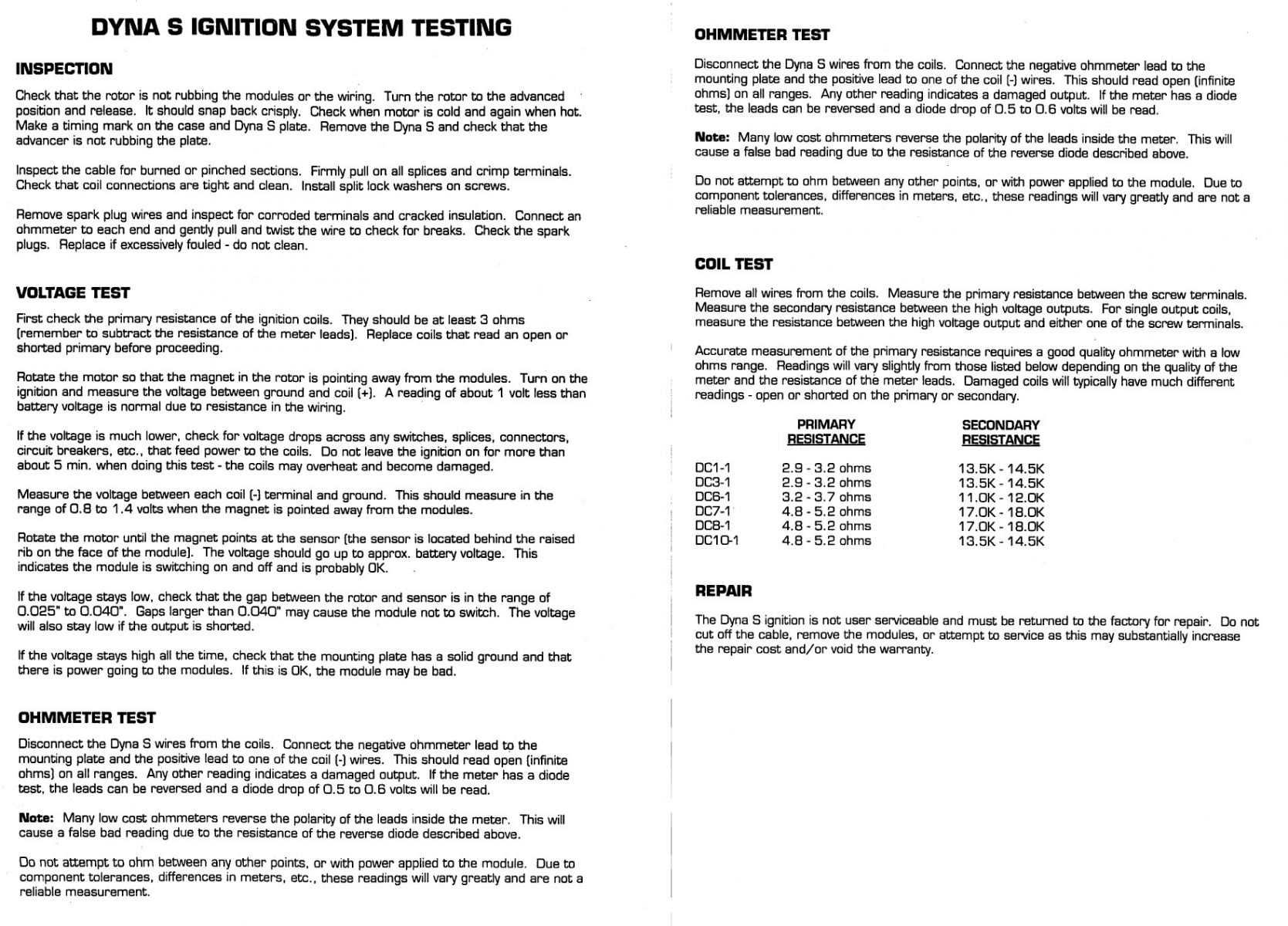 okay, thanks for all the help guys, im gonna borrow a voltage tester and test according to dynas module test method. if it turns out that this is the problem should i just replace? or is there a better option? i dont want to go back to points though lol.