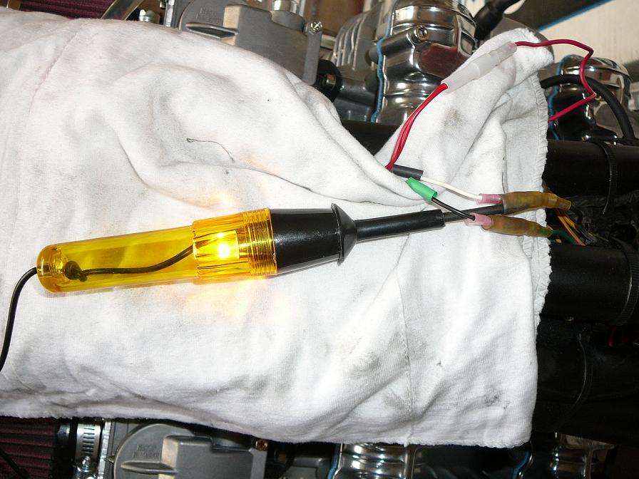 Did you perform the static test with an auto light (+12Vdc probe) verifying if it is indeed the Dyna ignition pickups...?