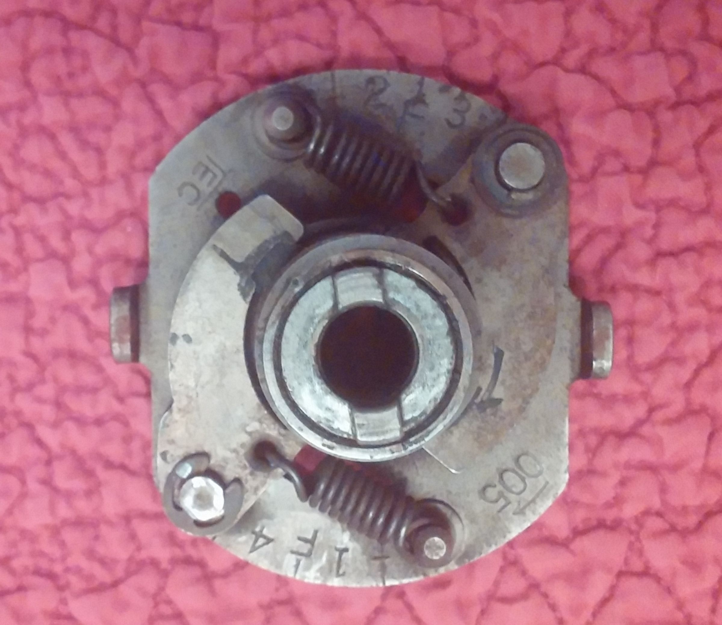 Took out the the points cam lobe today to check the orientation. The cam doesn't have a mark as an indicator, As you can see, my cam doesn't have a notch on top for alignment purpose. Since it can install in only two possible ways I am using the high side of the cam as a reference instead. As you can see, the high (thick) side of the cam is facing the 2 | 3 side of the advancer. if anyone has currently has theirs apart, can you please confirm that this is the correct orientation? Having trouble setting the timing by the book using new points. The same issue as the OP.