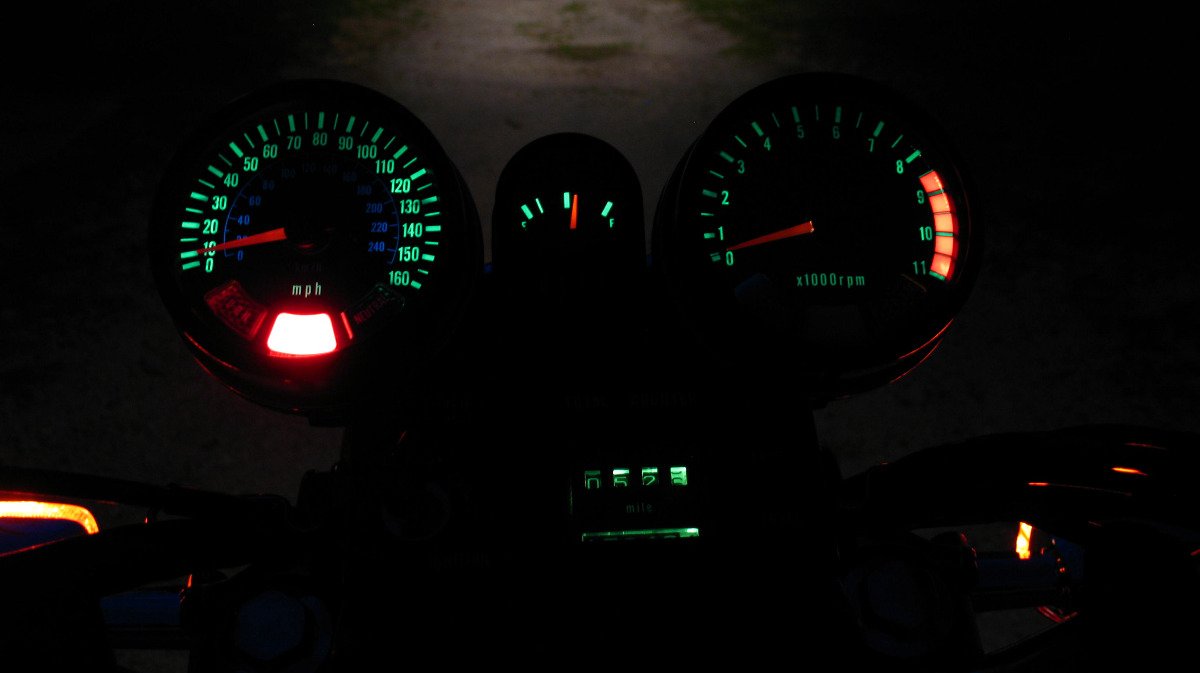Those gauges look so awesome! The 85 mph speedo on my old KZ1100 was pretty much maxed out at the top of 2nd gear.
