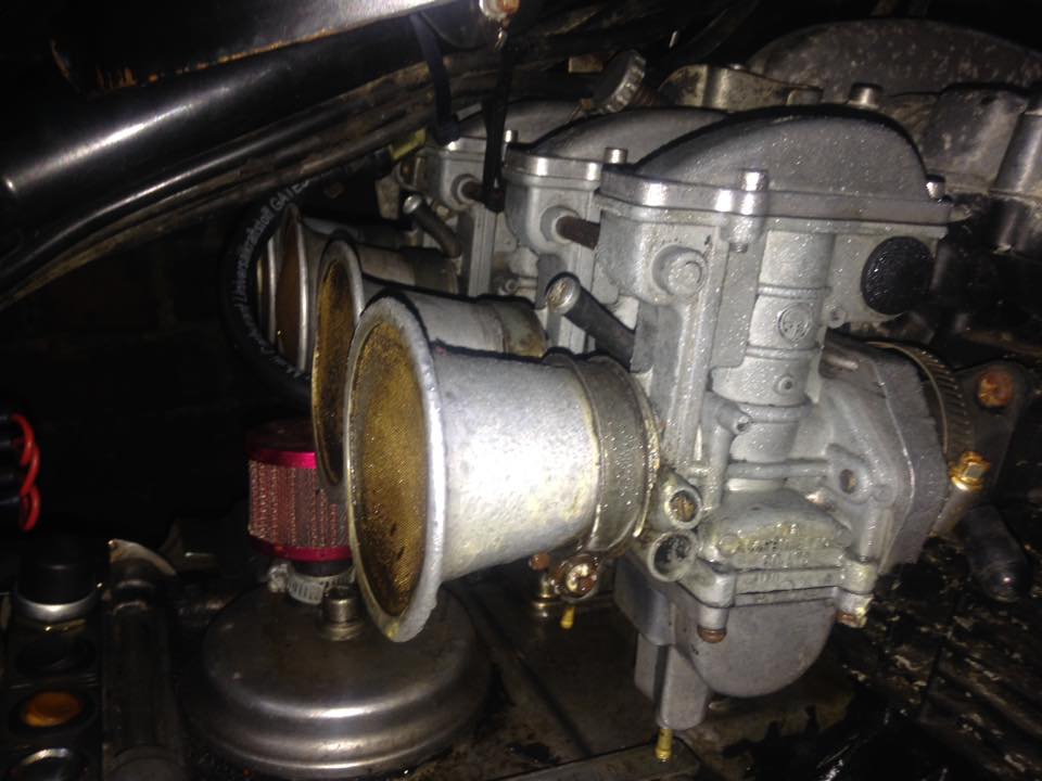 , im determined to get this right, the bike is running open cone filters which i personally think the bike is not ment to run them, i come out this morning to smell a very strong smell of fuel and noticed i had fuel coming out of the 1st carb closest to myself in the pick it was dribbling out of the the bottom connection like where you empty the bowl,