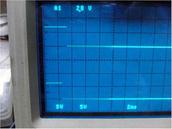 Input trace is on top. Output trace is on bottom. Both are on 5v scale. The voltage reference lines are there to show 0v reference for each signal.