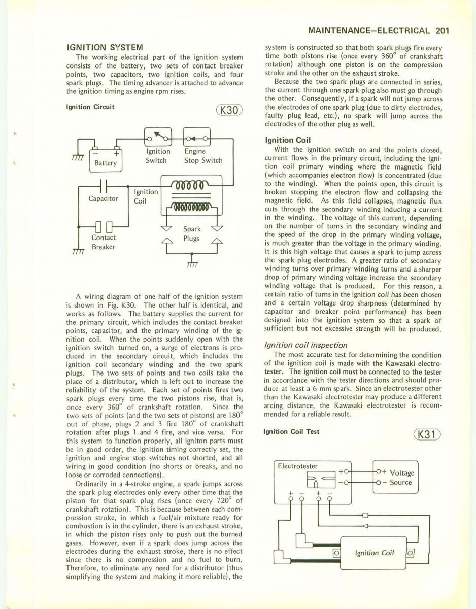 From the manual: "the working electrical part of the ignition system consists of a battery, two pickup coils, an IC igniter, etc etc."