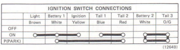 This diagram can be used to check the ignition switch by looking for resistance (ohms) as indicated
